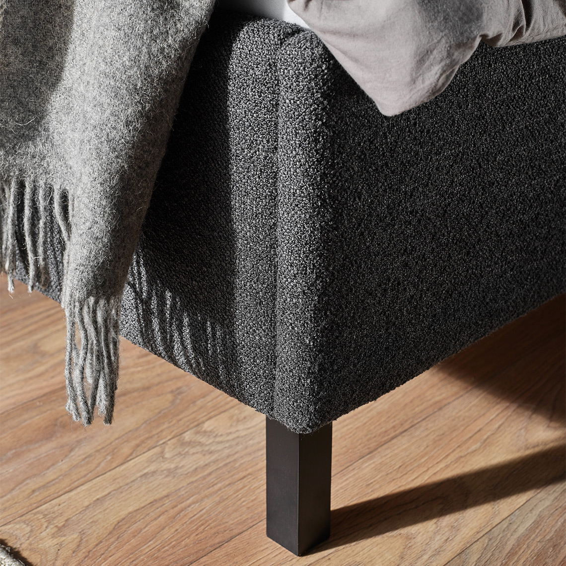 • Skrzynia i zagłówek łóżka są tapicerowane, co wizualnie ociepla i buduje przytulny nastrój w sypialni. Produkt można dopasować do swoich upodobań, wybierając rodzaj tkaniny obiciowej i jej kolor. Może być naturalna jak len czy wełna, łatwa w czyszczeniu lub szczególnie odporna na zwierzęce pazury – wzornik jest dostępny w salonie VOX.