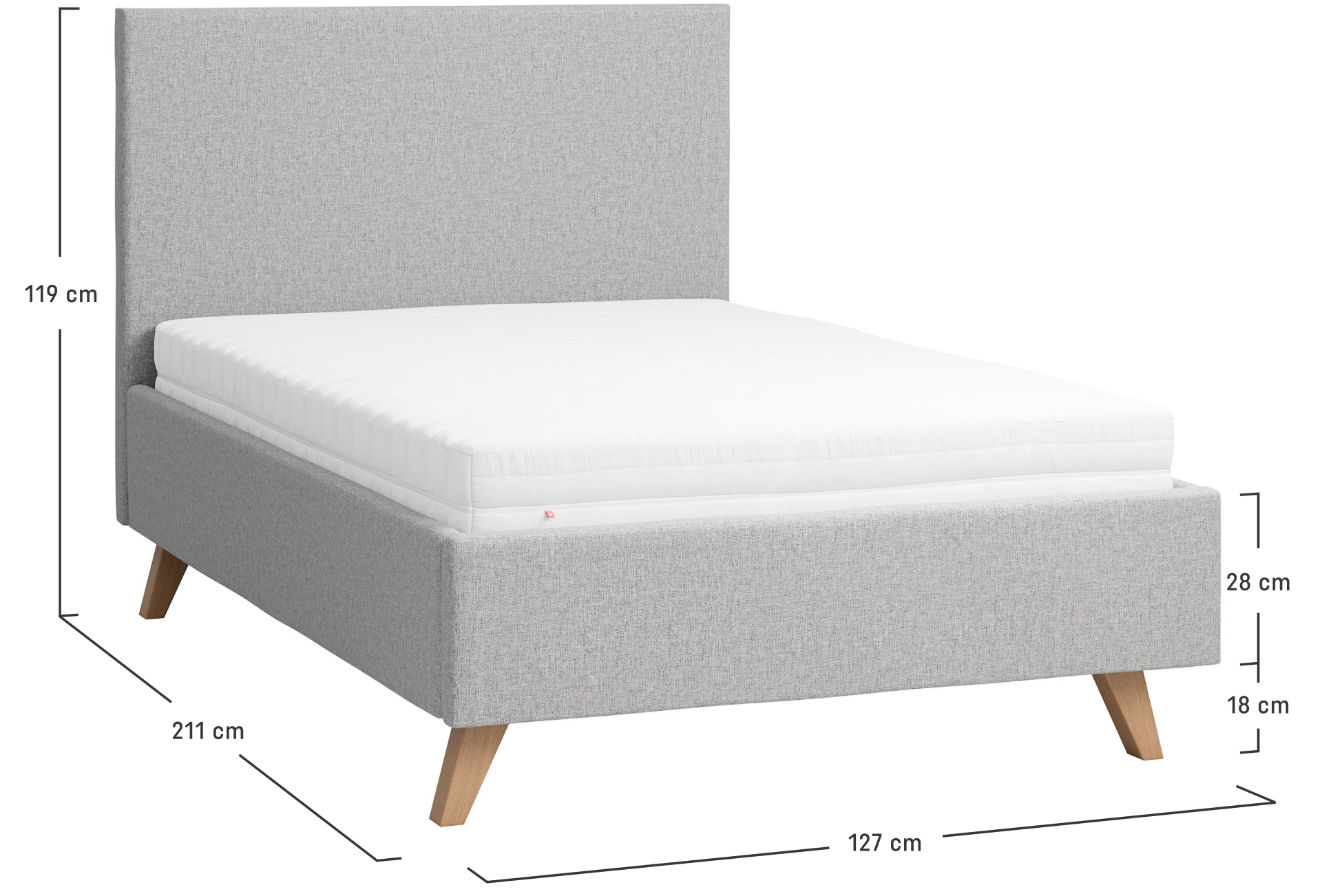 • Do łóżka należy dokupić materac o preferowanej twardości. Najlepiej będzie prezentować się model bez wyraźnie zaokrąglonych krawędzi. Dopuszczalna waga materaca to 15-40kg.