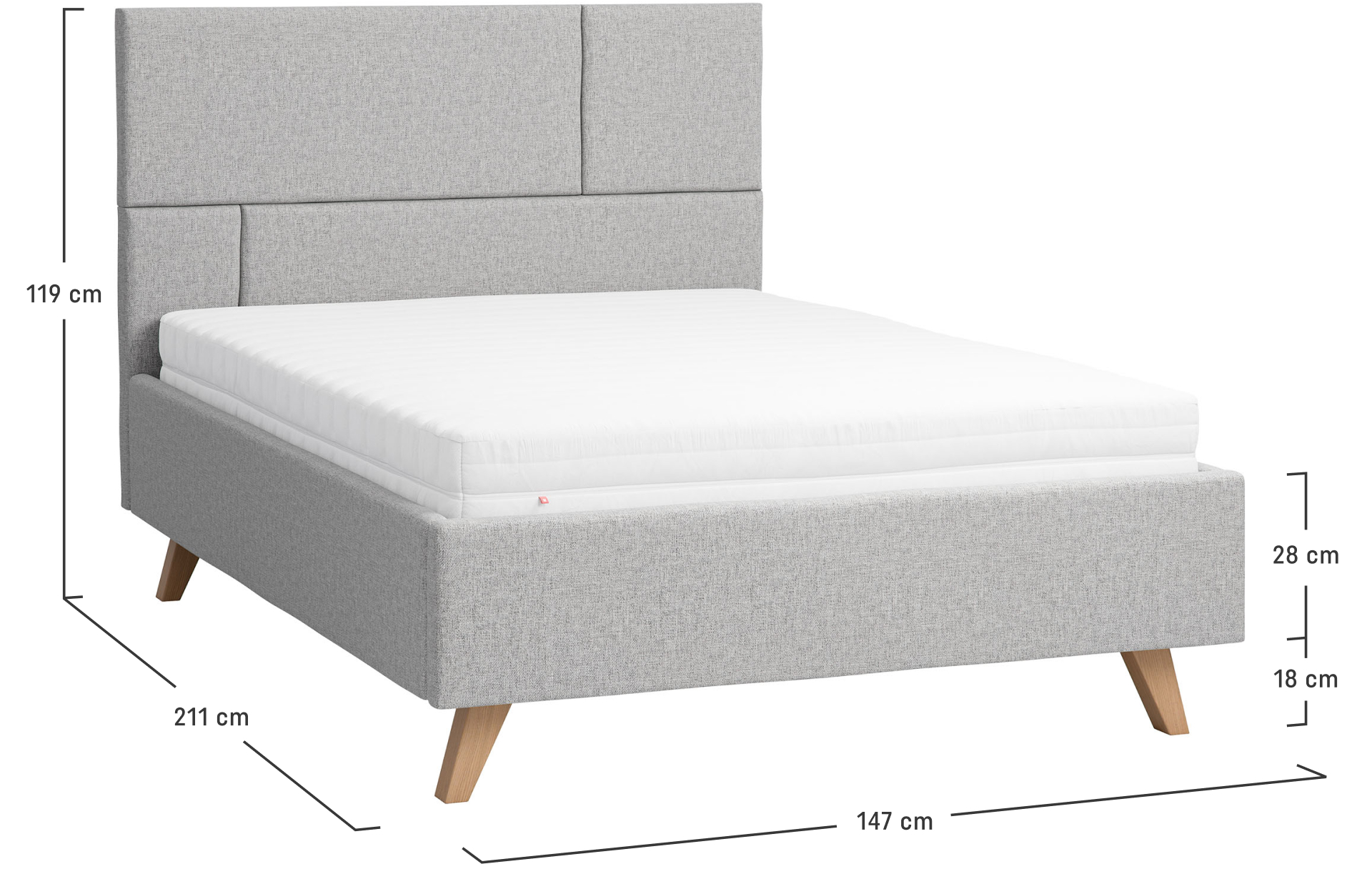 - Łóżko Geometric zapewnia komfortowy wypoczynek 1 lub 2 osobom. Jego powierzchnia spania wynosi 140 x 200 cm.