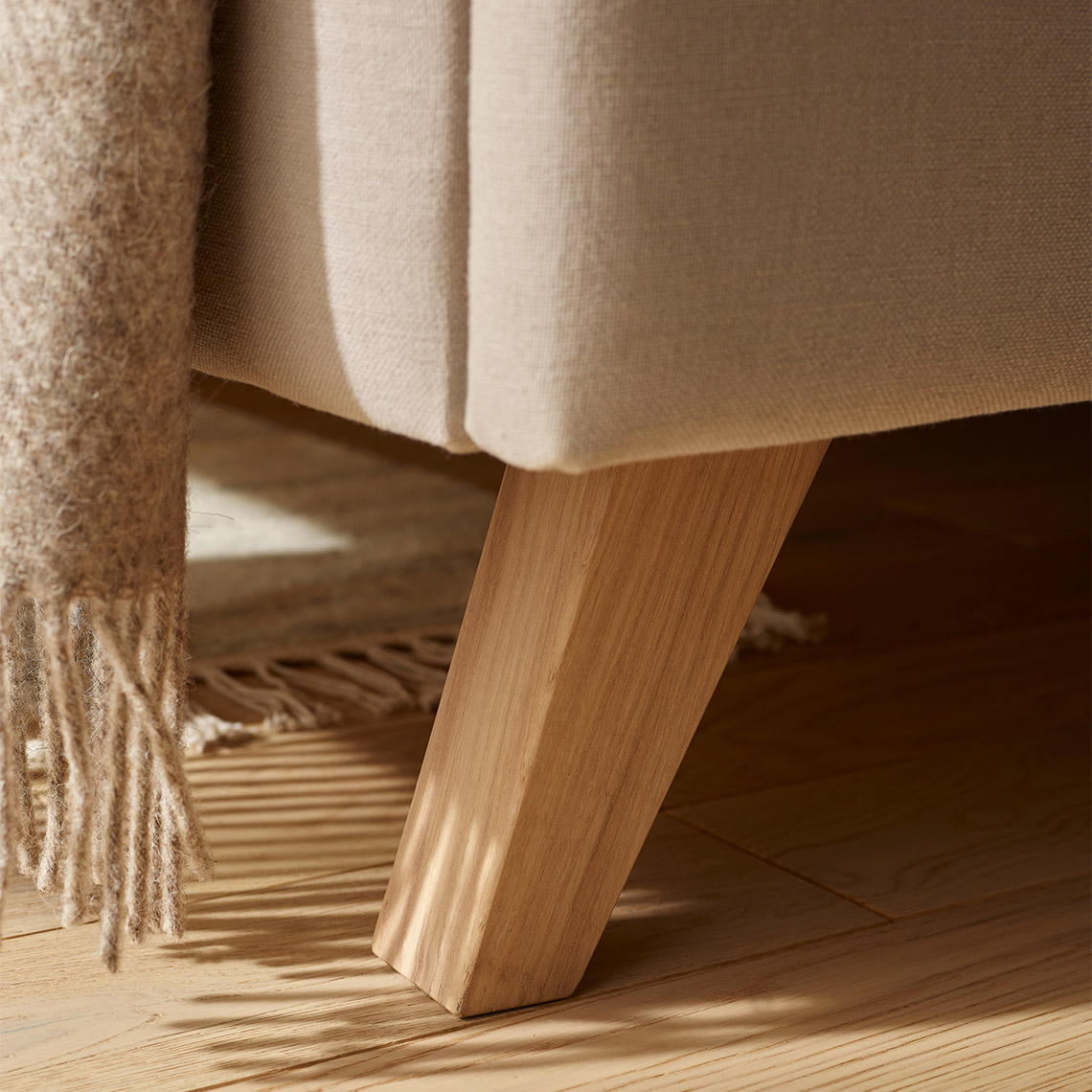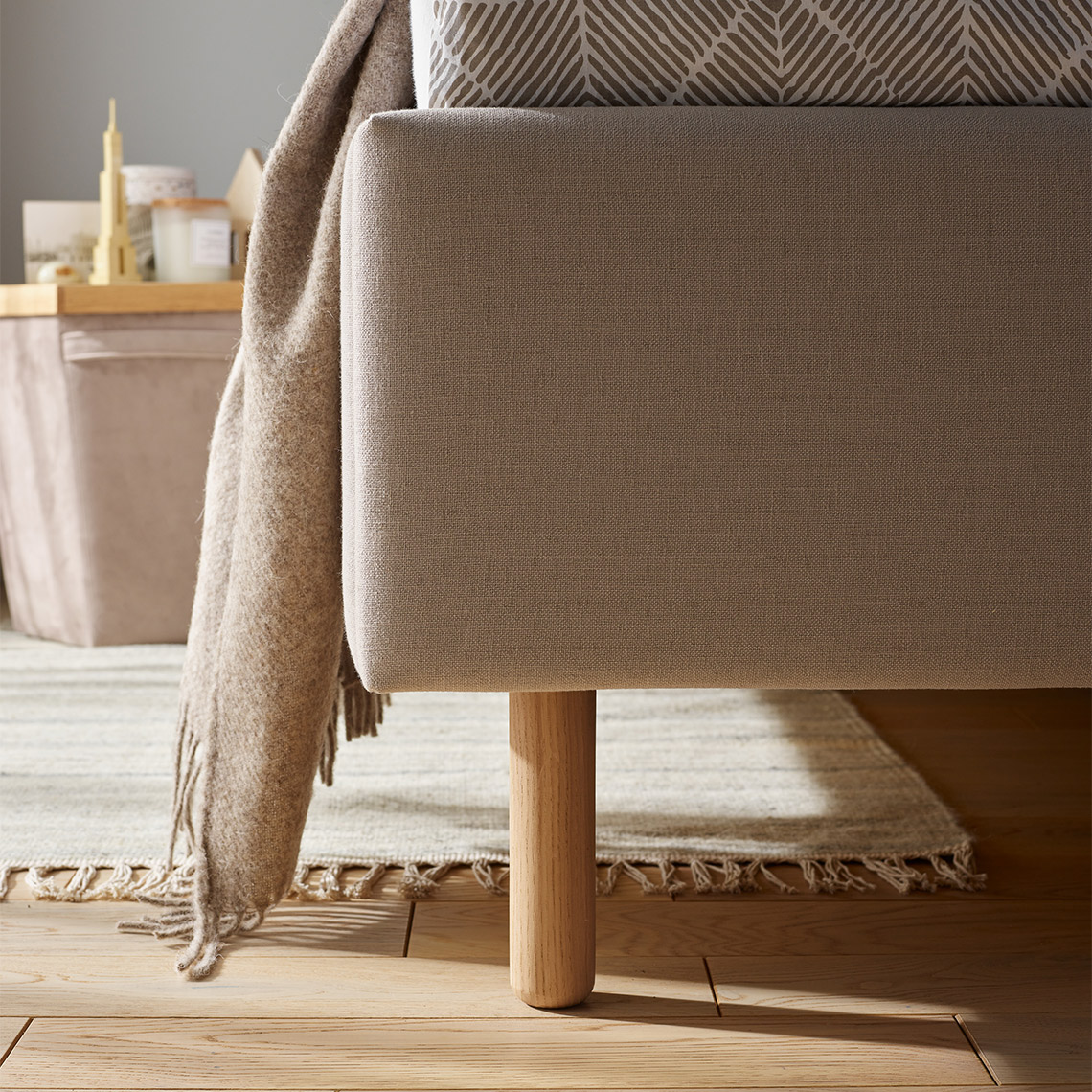 - Personalizacji podlegają również drewniane nogi łóżka. Wysokie na 18 cm, ułatwiają sprzątanie w pokoju. Są dostępne w 5 wersjach do wyboru: skośne naturalny dąb, skośne jasny dąb, skośne czarne, czarne proste i owalne w odcieniu jasny dąb.