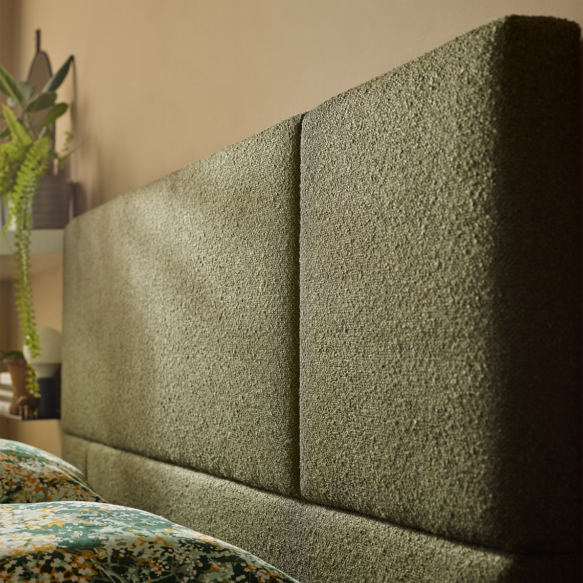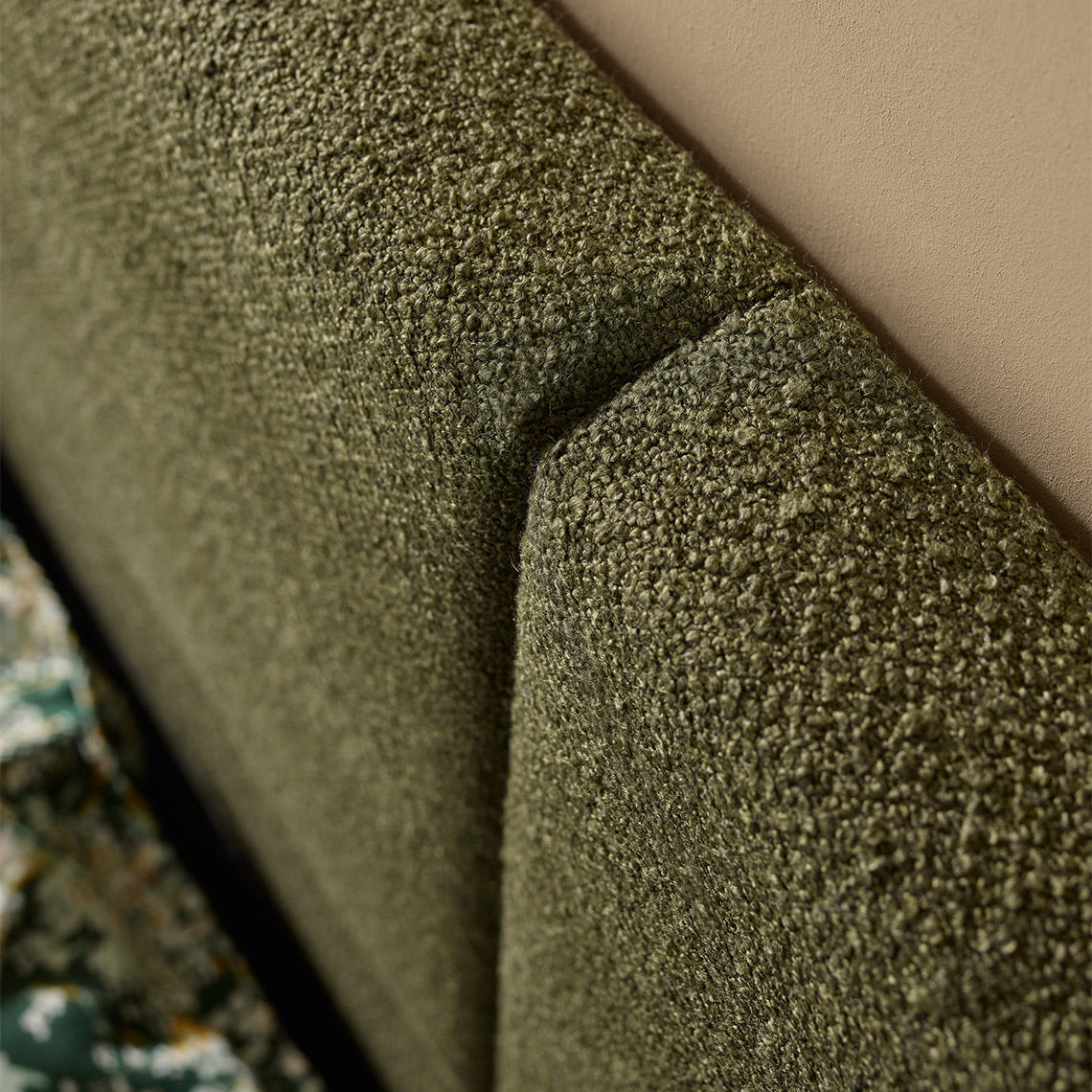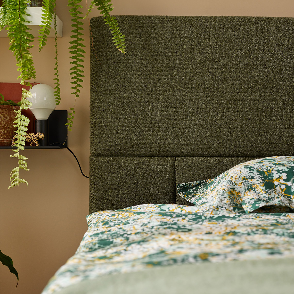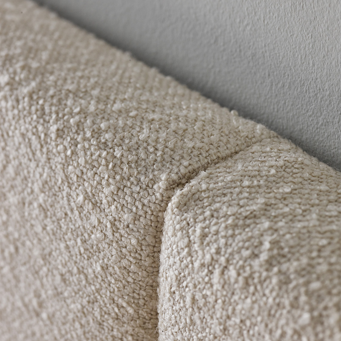 - Mebel jest pokryty tkaniną tapicerską – obito nią zarówno boki skrzyni, jak i zagłówek. Dzięki temu łóżko prezentuje się elegancko i nadaje sypialni przytulny charakter. Produkt można spersonalizować, wybierając rodzaj i kolor tapicerki – do wyboru są m.in. tkaniny naturalne, easy clean czy pet friendly. Wzornik znajduje się w salonie VOX.