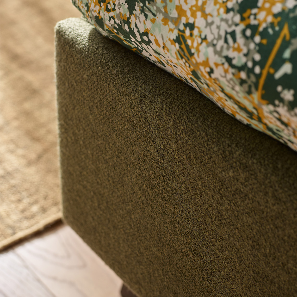 Miękkość oparcia to zasługa wypełnienia z pianki. Skrzynia jest wykonana z płyty meblowej, trwałej i wytrzymałej, pokryta wybraną tkaniną. Metalowy stelaż łóżka posiada listwy sprężynujące i podnośnik gazowy. Całość opiera się na solidnych nóżkach z drewna dębowego lub bukowego.