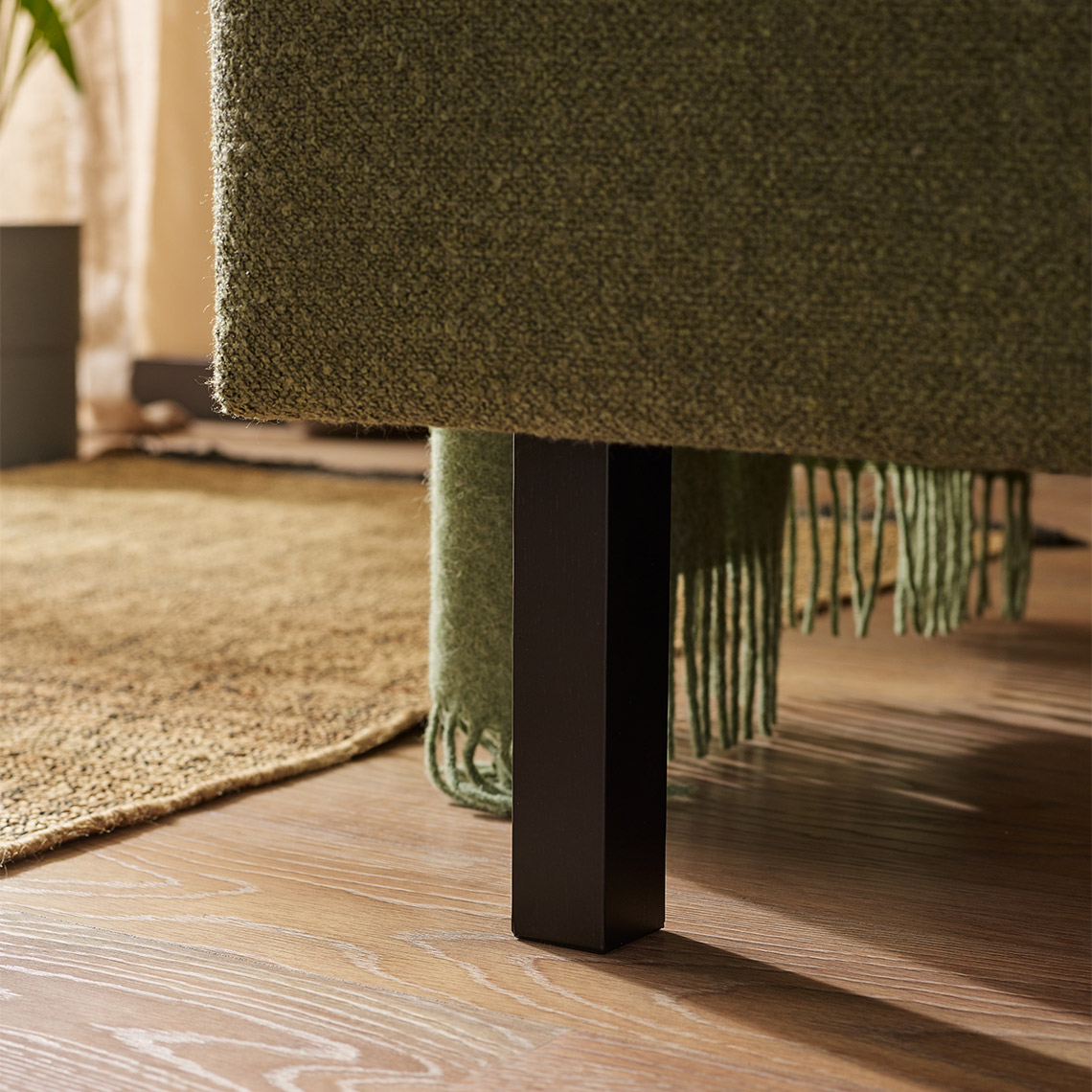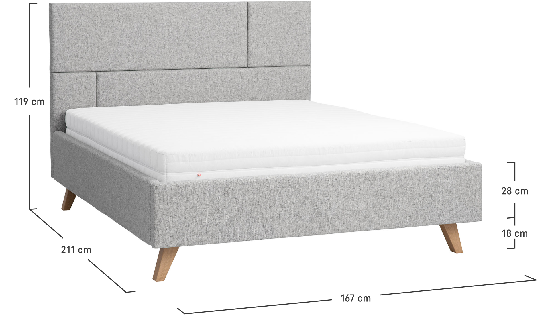 - Wysokie na 18 cm nogi łóżka pozwalają utrzymać czystość w pokoju. Występują w 5 wersjach do wyboru: skośne dąb, skośne jasny dąb i skośne czarne, walec jasny dąb i proste czarne.