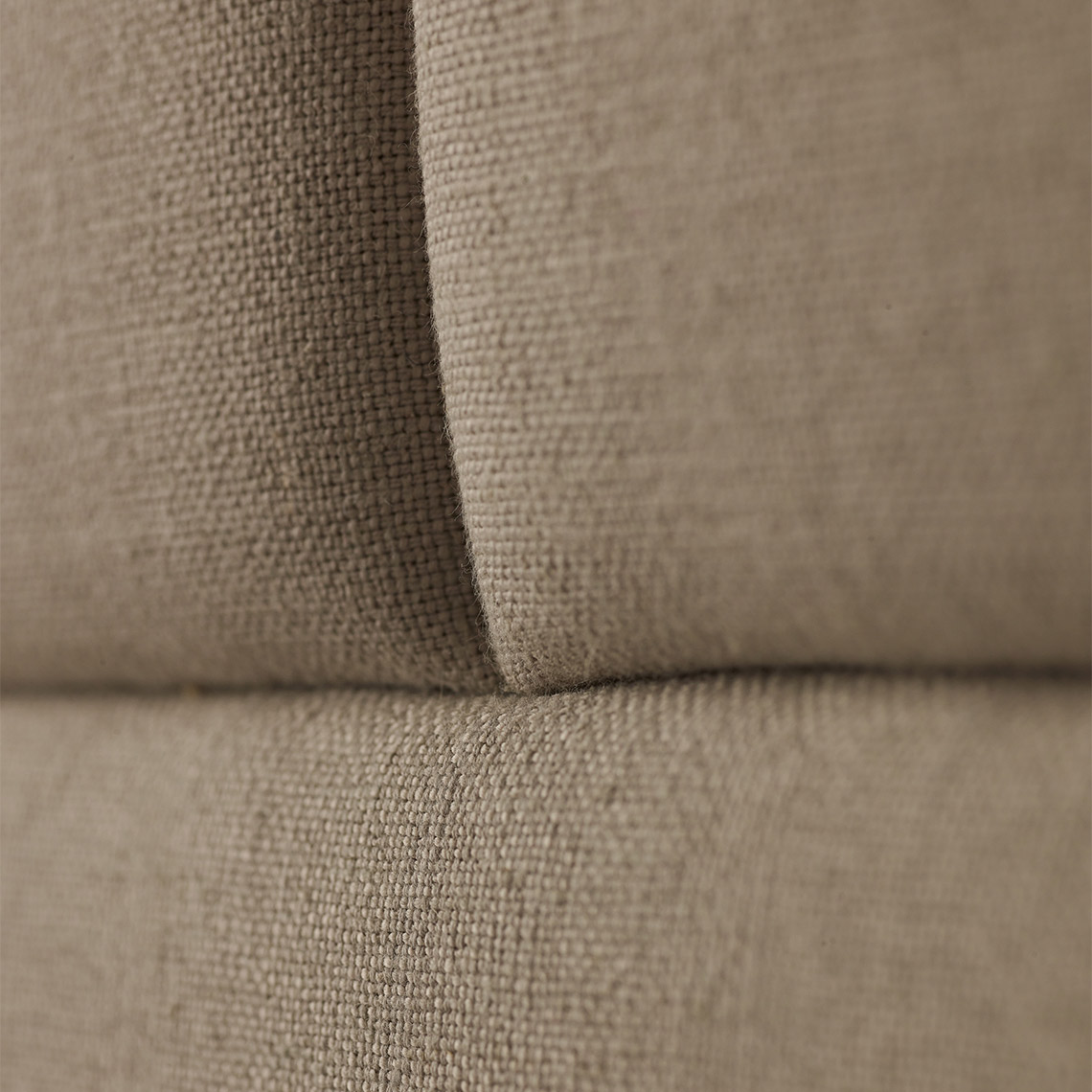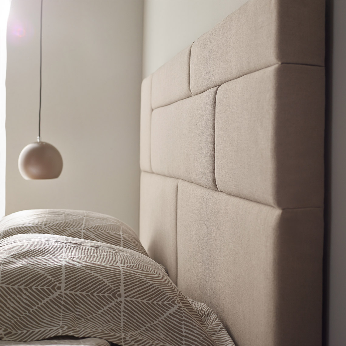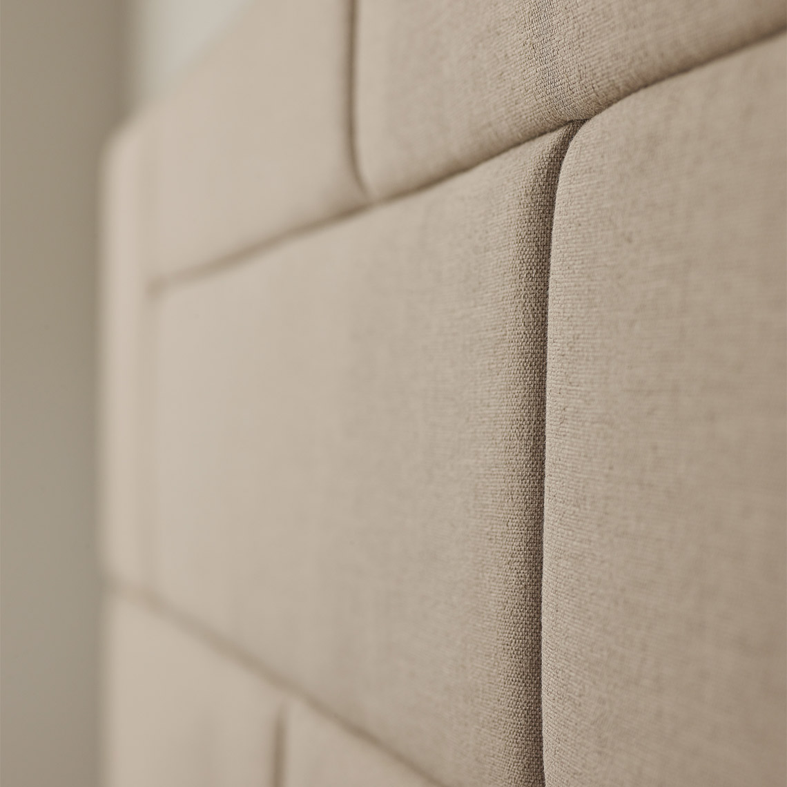Tapicerowane oparcie wypełniono pianką, która nadaje zagłówkowi miękkość. Skrzynia została wykonana z płyty meblowej, trwałej i wytrzymałej, pokryta wybraną tkaniną. Stelaż łóżka jest metalowy, z listwami sprężynującymi i podnośnikiem gazowym. Konstrukcja opiera się na solidnych nogach z drewna dębowego lub bukowego.