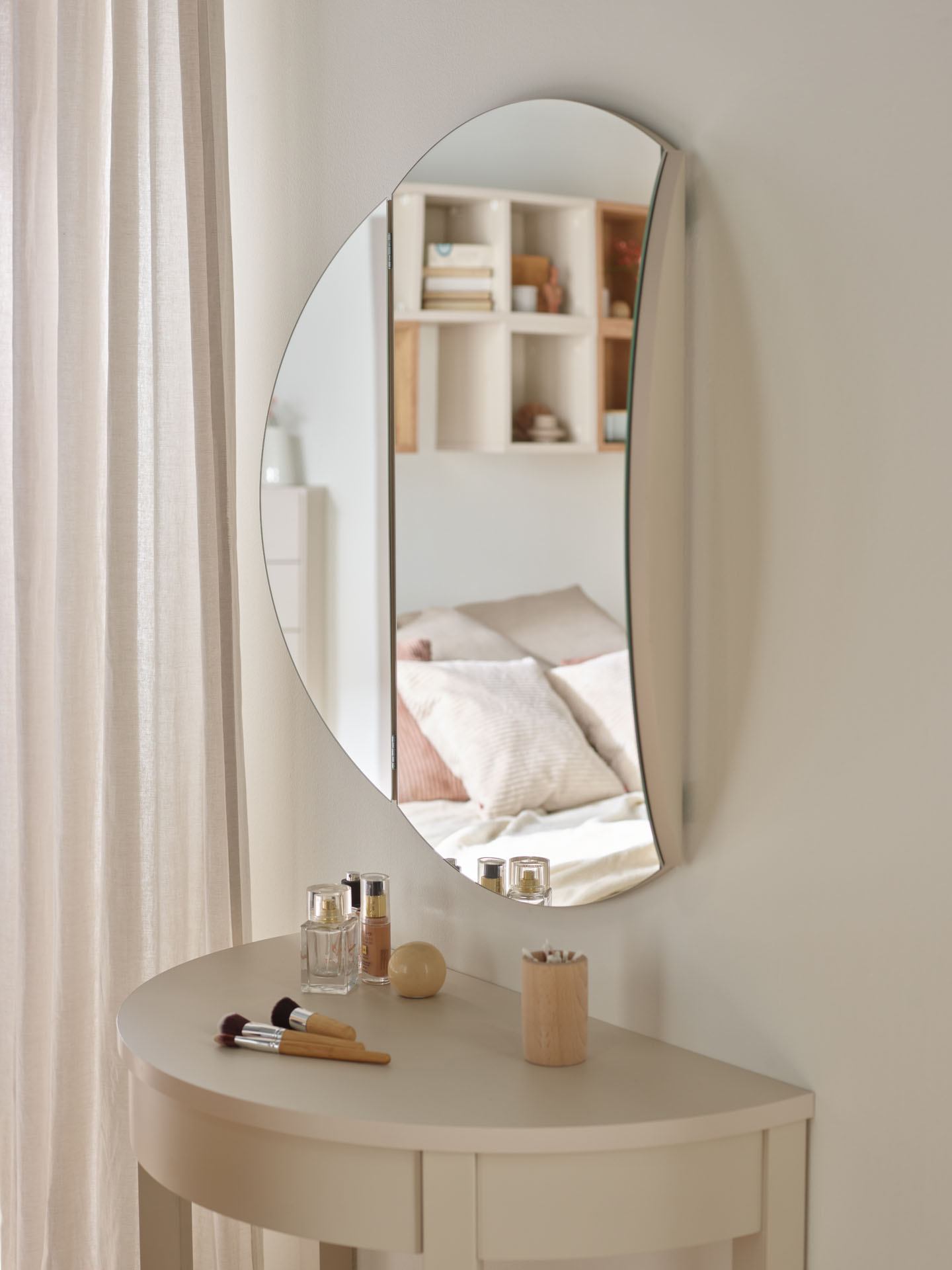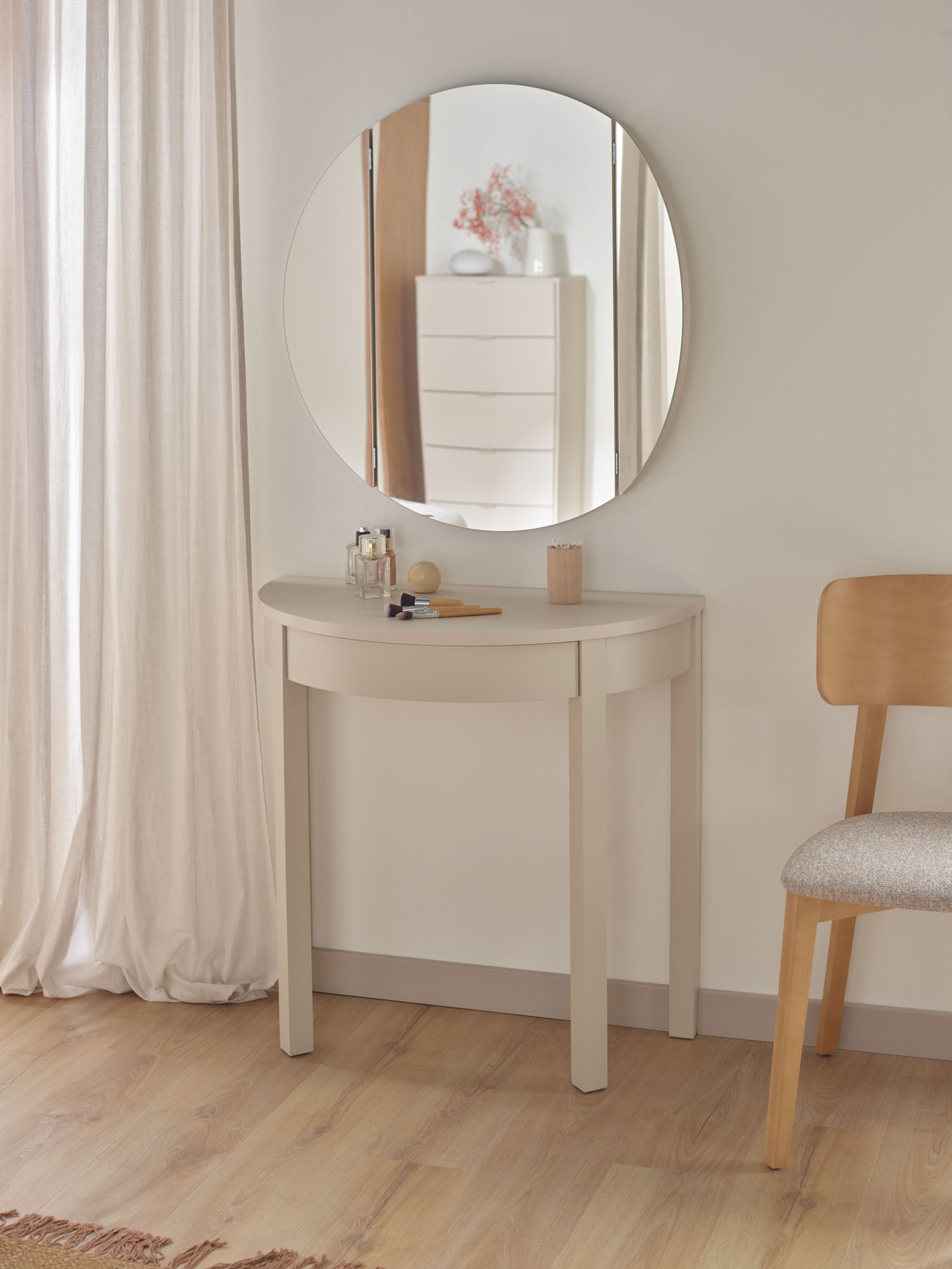 Lustro ma średnicę 80cm. Może funkcjonować samodzielnie lub jako uzupełnienie toaletki Simple.