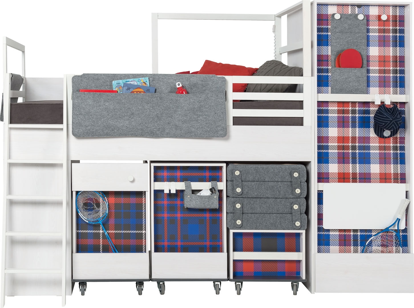 Niniejsza nakładka jest elementem kolekcji Krata i przeznaczona jest do jednego z kontenerków łóżka multi, a mianowicie do biurka łóżka multi.