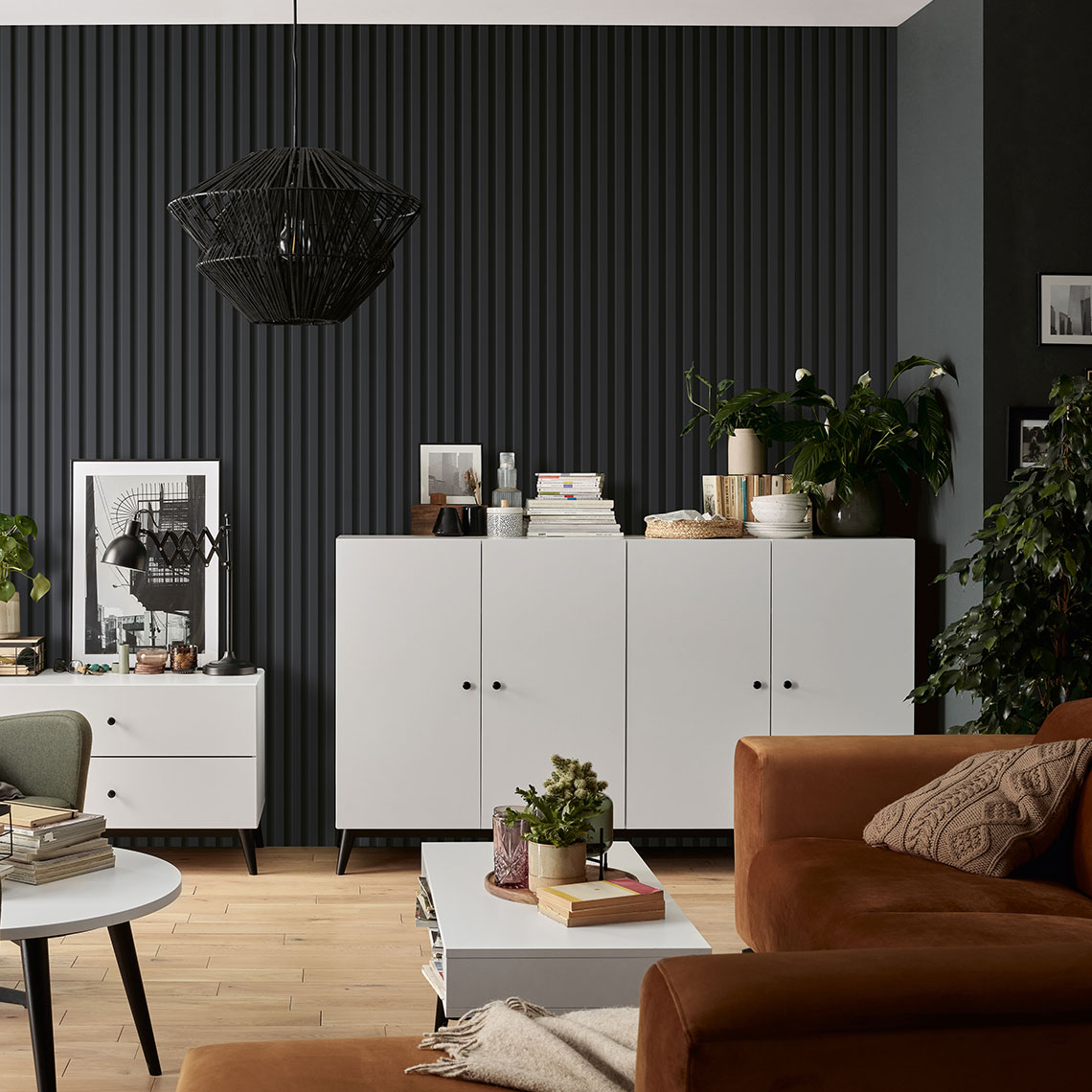 Panele lamelowe Linerio L-Line w antracytowym kolorze mogą zostać zamontowane na ścianie lub suficie. Szerokie lamele będą efektownym dodatkiem do wnętrz urządzonych w nowoczesnym stylu. Pozwolą wyróżnić wybraną strefę pomieszczenia i wyciszyć przestrzeń. Produkt cechuje się lekkością i trwałością.