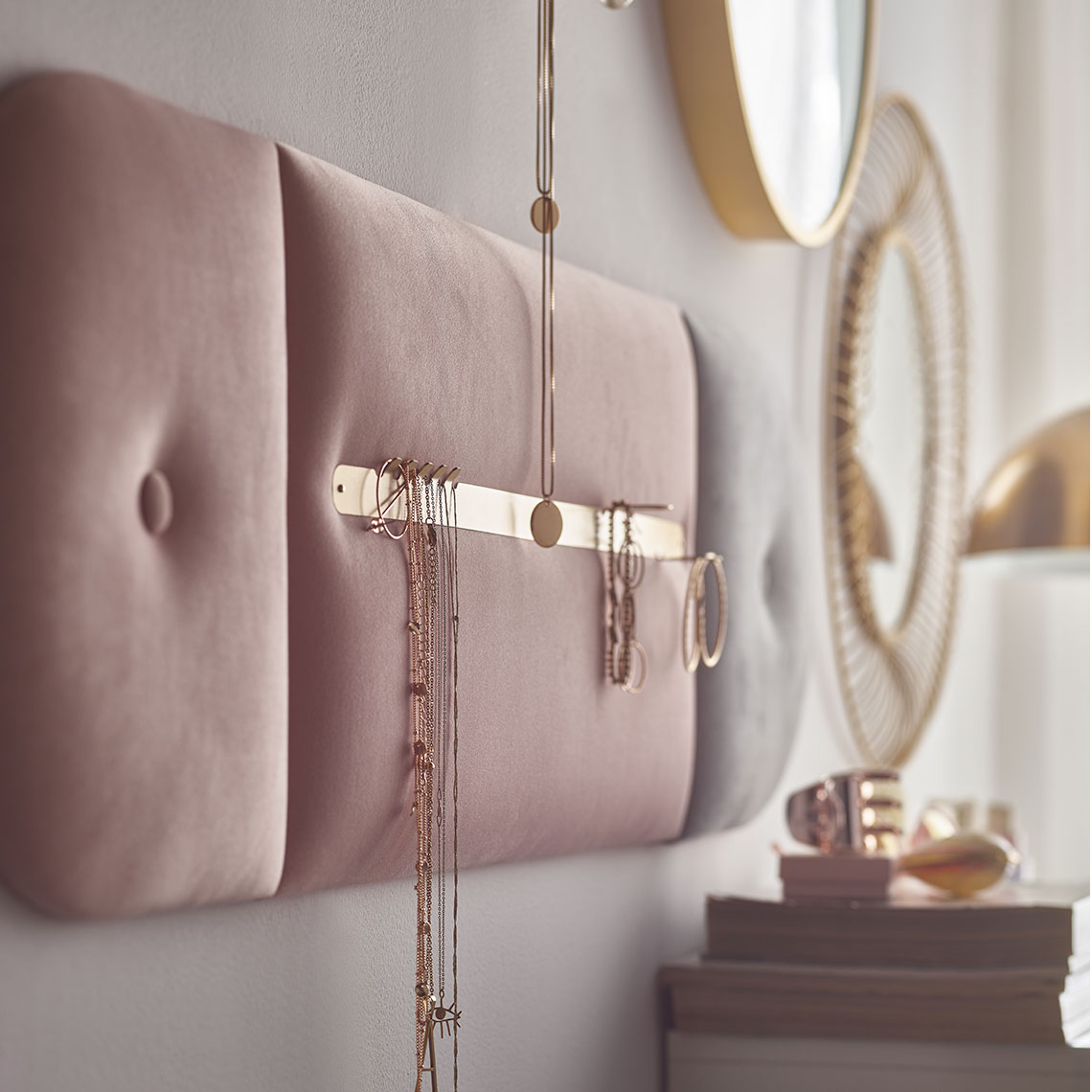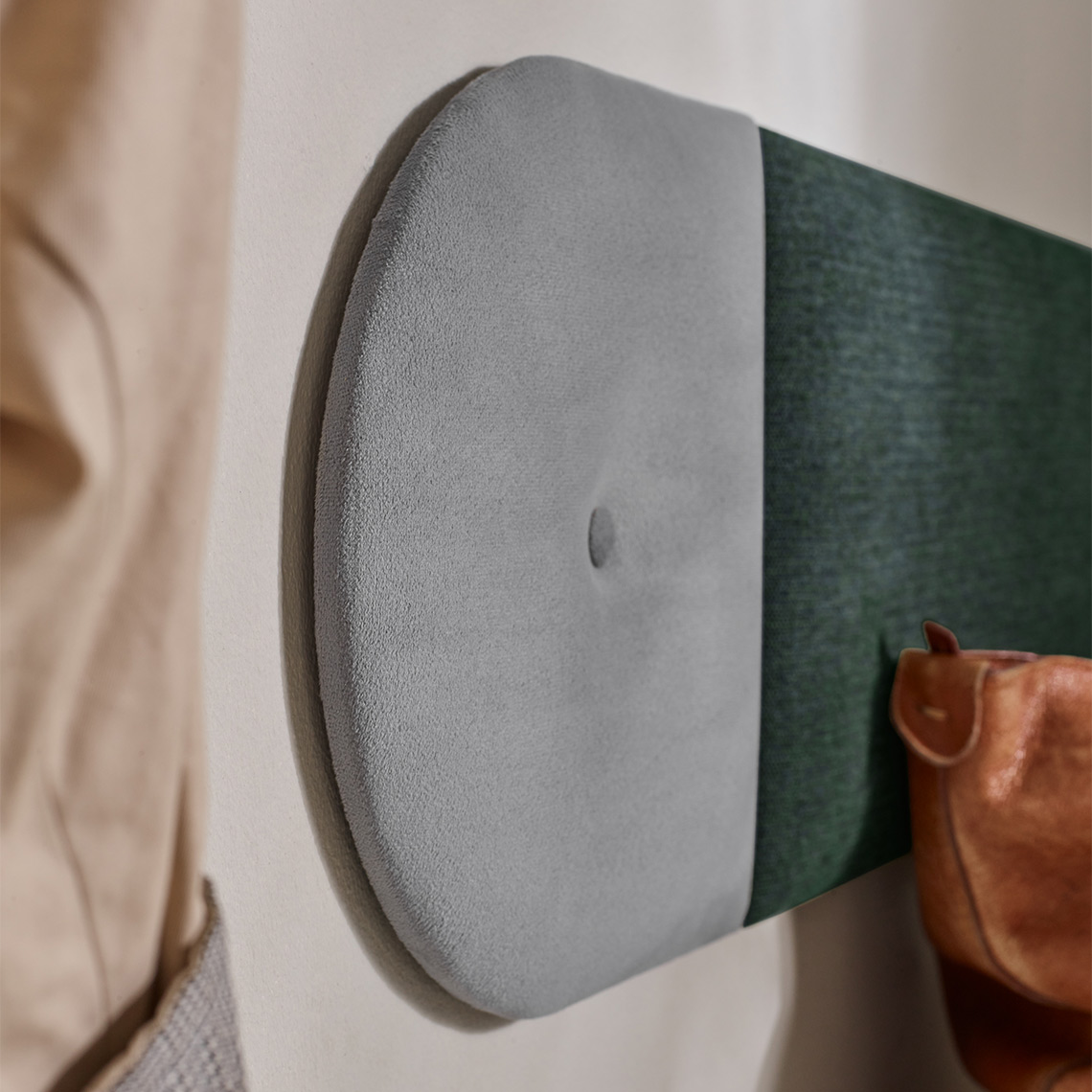 Panele tapicerowane Oval 3 pozwalają kreować przytulną i oryginalną przestrzeń w domu, a przy tym mogą pełnić wiele praktycznych funkcji. Umieszczony w panelu guzik tworzy ozdobne pikowanie, które przyciąga wzrok i dopełnia aranżację. Możesz wybierać spośród kilkunastu dostępnych kolorów tkanin.