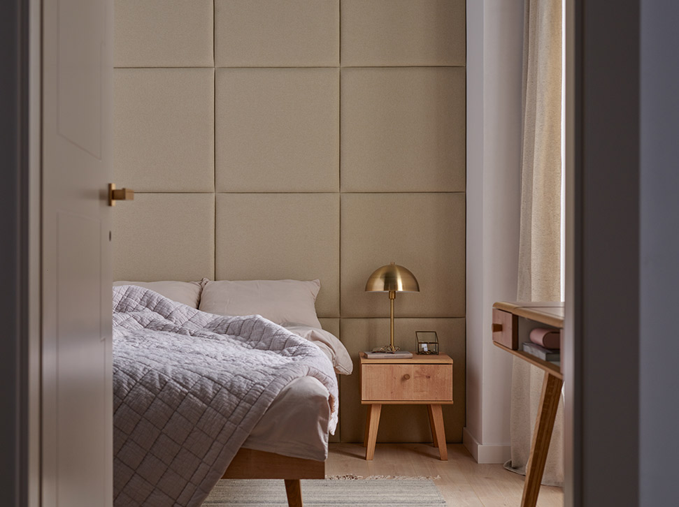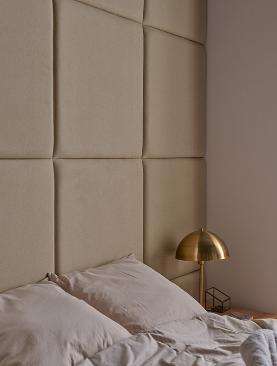 - Przyjemne w dotyku panele tapicerowane wyciszą i ocieplą wnętrze.