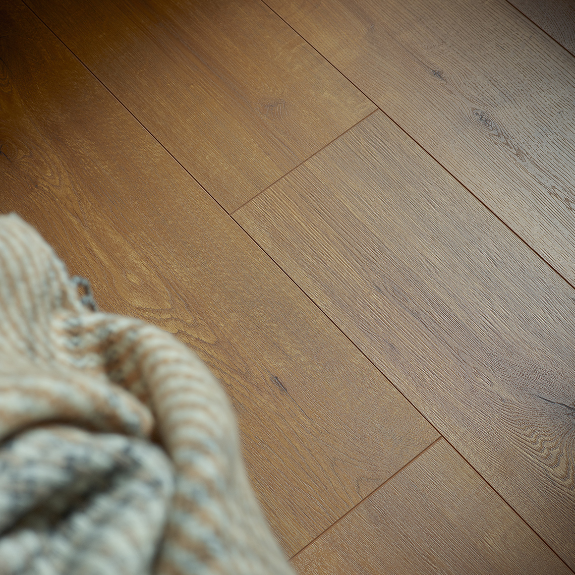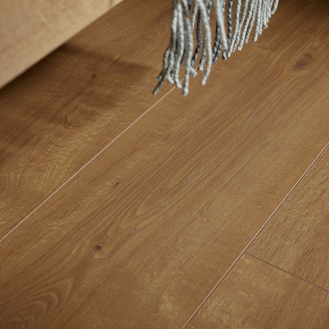 Panel Dąb Ginger posiada wysoką klasę ścieralności AC5.Dzięki opracowanemu zamkowi i dodatkowym zabezpieczeniom w postaci warstwy hydrofobowej Dąb Ginger można stosować w pomieszczeniach o zwiększonej wilgotności. Panel posiada matową strukturę drewna, dzięki czemu precyzyjnie oddaje wygląd słoi przy zachowaniu gładkiej powierzchni. Technologia Water Resistant zapobiega absorpcji płynów przez płytę nośną paneli na ich powierzchni do 24 godzin.