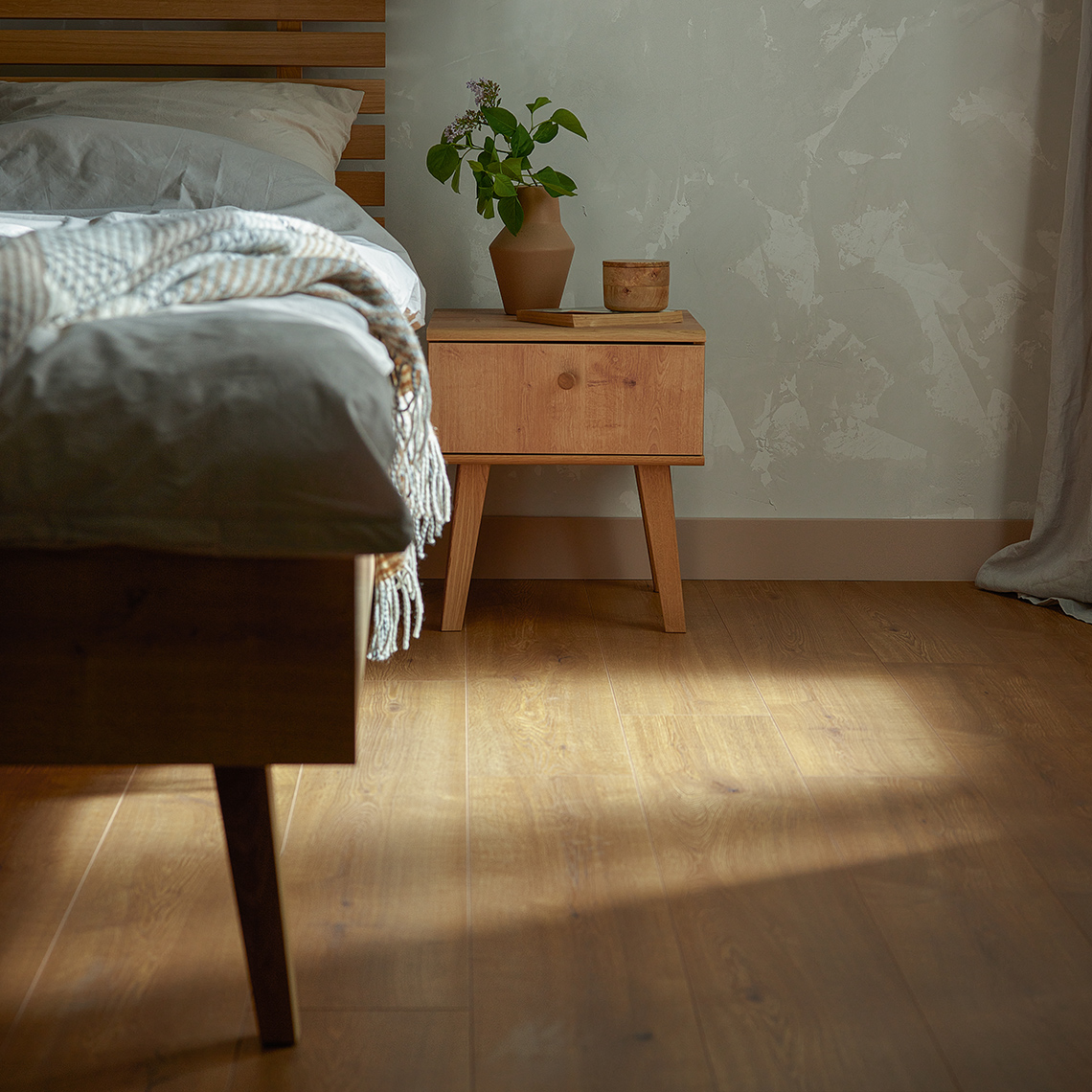 Querra Magna Plus WR to kolekcja podłóg laminowanych w której słoje drewna są doskonale odzwierciedlone. Podłoga charakteryzuje się bardzo wysoką odpornością na wodę i uszkodzenia. Specjalna technologia sprawdzania zamka, wykorzystana w kolekcji pozwala na montaż podłogi bez dylatacji do wielkości 169 m2.