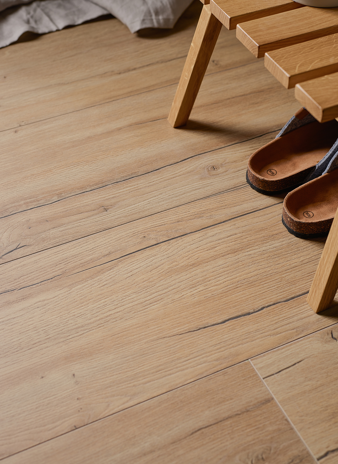 Wzmocniona górna warstwa podłogi Querra Balance WR zapewnia zwiększoną odporność na mikrozarysowania, dzięki czemu jej struktura postarzonego drewna utrzymuje się przez lata. Panel Dąb Vente o wysokiej klasie ścieralności AC5, dzięki bardziej szczelnemu zamkowi i dodatkowym zabezpieczeniom umożliwia montaż paneli w pomieszczeniach o zwiększonej wilgotności (z wyłączeniem sauny i strefy prysznica).