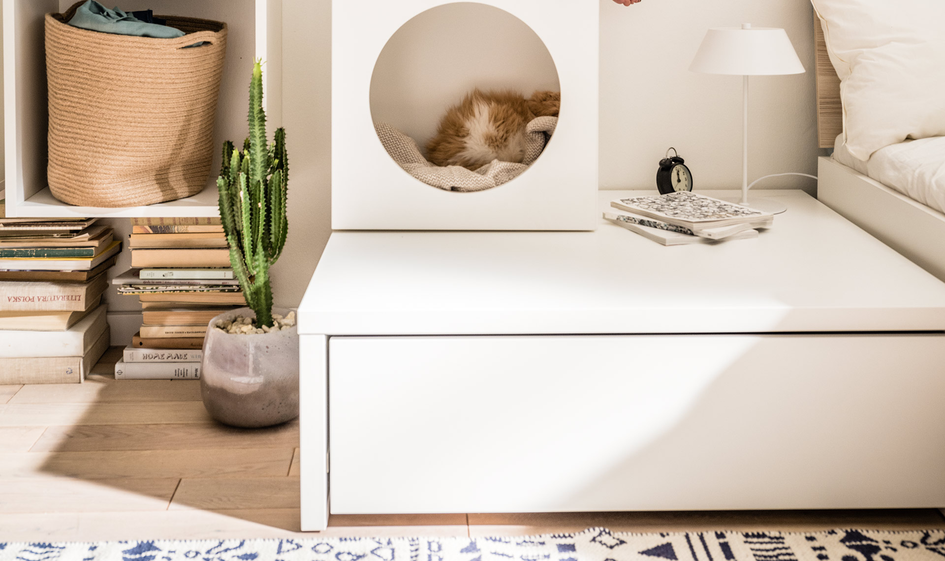 Podest stanowi funkcjonalną podstawę dla mebli z kolekcji Young Users. Występuje w wersji z mobilną szufladą bądź wysuwanym stolikiem, a dodatkowo sprawdza się jako siedzisko – wystarczy ułożyć na nim poduszki.