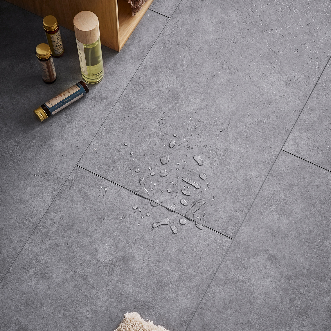 Wodoodporne panele winylowe Concrete Dark z kolekcji Rigio posiadają przyjemnie ciepłą powierzchnię o matowym wykończeniu. Dzięki bardzo dużej odporności na ścieranie można je zastosować w całym mieszkaniu. Montaż bez dylatacji pozwoli uzyskać jednolitą podłogę, która dobrze łączy się z ogrzewaniem podłogowym.