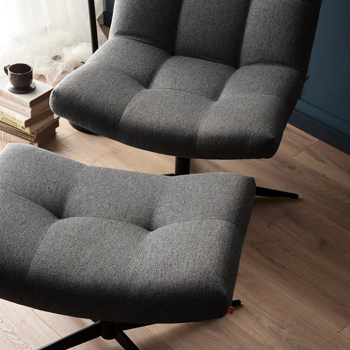 - Jeśli marzysz o miejscu, w którym przez wiele godzin oddasz się rozmyślaniom, czytaniu książek czy słuchaniu muzyki, fotel Banco jest idealnym wyborem dla Ciebie. Smukła, obrotowa podstawa sprawia, że mebel ten nie przytłoczy niewielkiej przestrzeni. A podnóżek? Któż by go nie chciał, szczególnie na długie jesienne wieczory.