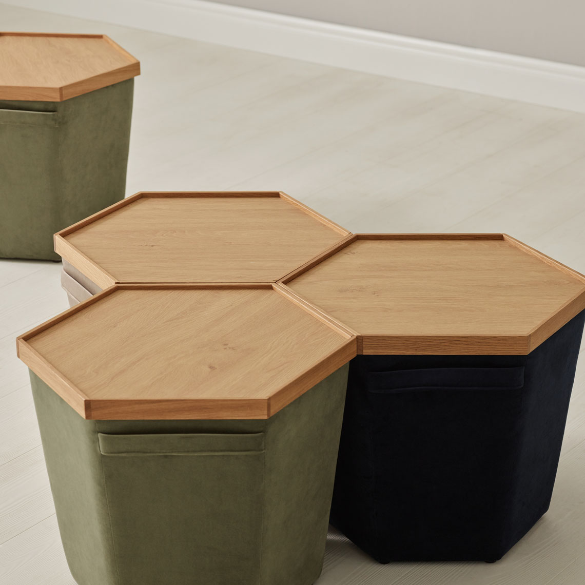 Puf Doppio dostępny jest w trzech kolorach. Puf posiada dwustronne wieko dzięki czemu może funkcjonować zarówno jako stolik jak i puf do siadania. Kiedy wieko pełni funkcję stolika, jego podwyższone ranty zabezpieczają puf przed zalaniem gdy przewrócimy np. szklankę z wodą. Rant zabezpiecza także przedmioty przed przypadkowym strąceniem. Wewnątrz pufa znajduje się wyścielony podszewką pojemnik, w którym możesz przechowywać koc, poduszkę, akcesoria związane z hobby, gazety itd. Wygodne uchwyty ułatwią przenoszenie pufa tak by mógł Ci towarzyszyć zawsze tam gdzie będzie potrzebny. Pufy z kolekcji Doppio można zestawiać ze sobą i tworzyć wyjątkowy mebel. Dzięki kształtowi wieka pasują do siebie idealnie i mogą stworzyć większy stolik w wybranym przez Ciebie kształcie.