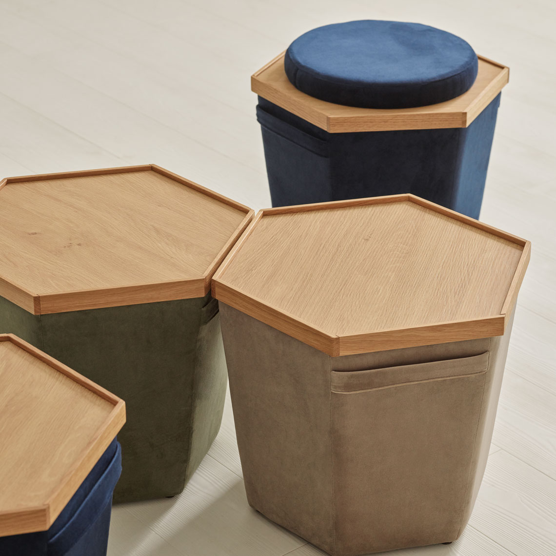 Puf Doppio dostępny jest w trzech kolorach. Puf posiada dwustronne wieko dzięki czemu może funkcjonować zarówno jako stolik jak i puf do siadania. Kiedy wieko pełni funkcję stolika, jego podwyższone ranty zabezpieczają puf przed zalaniem gdy przewrócimy np. szklankę z wodą. Rant zabezpiecza także przedmioty przed przypadkowym strąceniem. Wewnątrz pufa znajduje się wyścielony podszewką pojemnik, w którym możesz przechowywać koc, poduszkę, akcesoria związane z hobby, gazety itd. Wygodne uchwyty ułatwią przenoszenie pufa tak by mógł Ci towarzyszyć zawsze tam gdzie będzie potrzebny. Pufy z kolekcji Doppio można zestawiać ze sobą i tworzyć wyjątkowy mebel. Dzięki kształtowi wieka pasują do siebie idealnie i mogą stworzyć większy stolik w wybranym przez Ciebie kształcie.