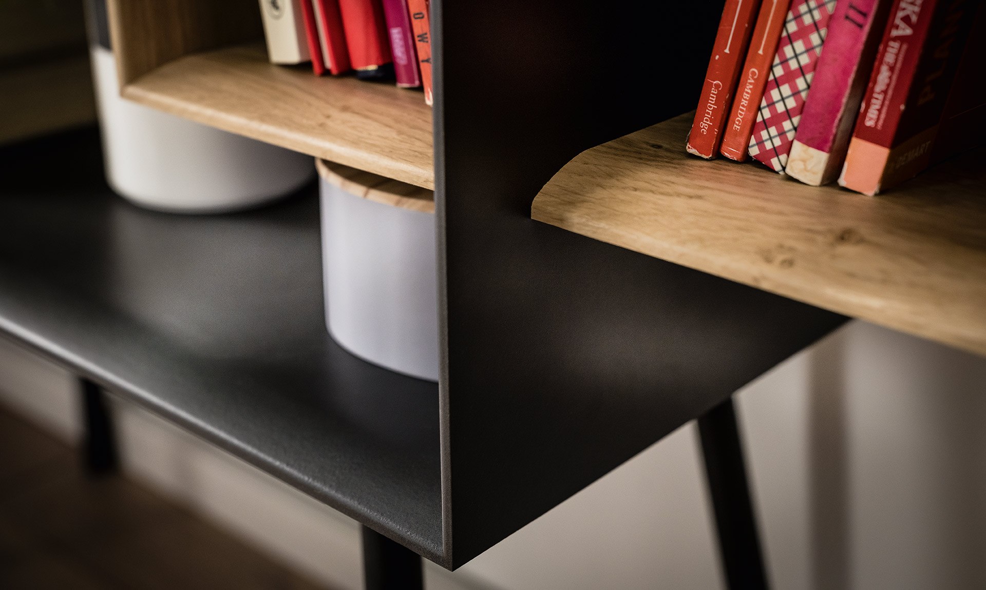 Estetyczne wykończenie poszczególnych kubików możliwe było dzięki zastosowaniu nowoczesnej technologii. W meblach z kolekcji Ribbon nie ma widocznych połączeń znanych z klasycznych mebli wykonywanych z płyty meblowej.