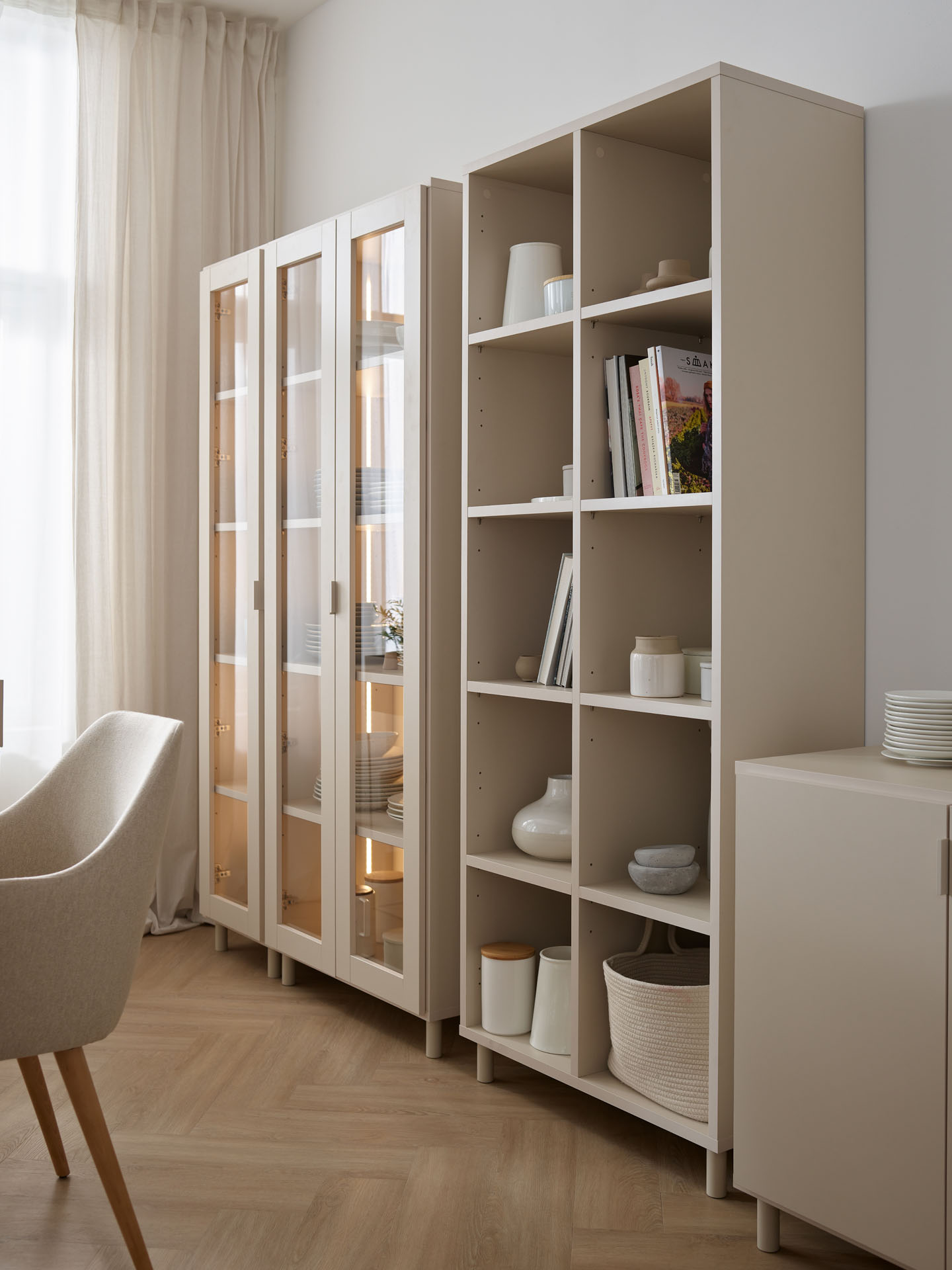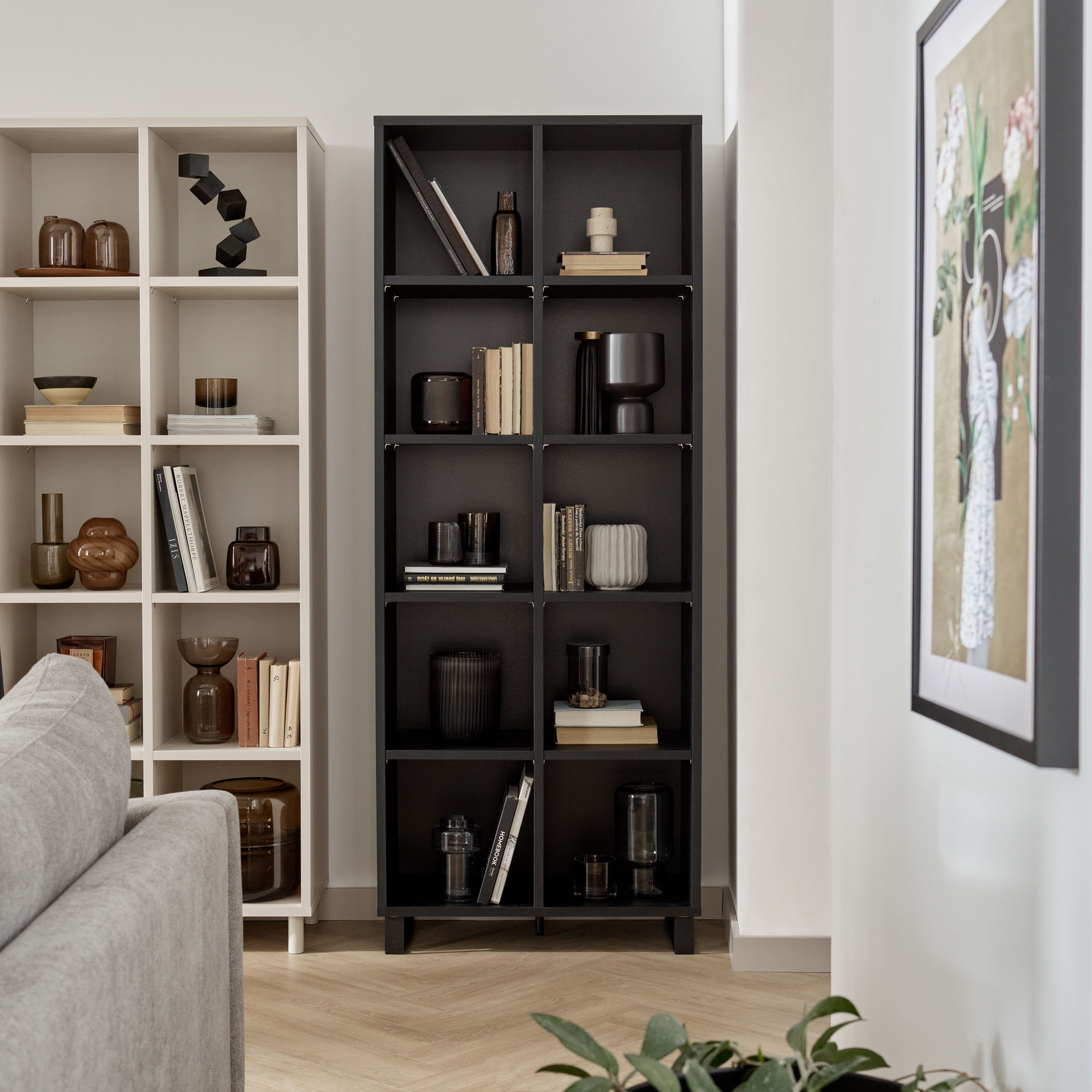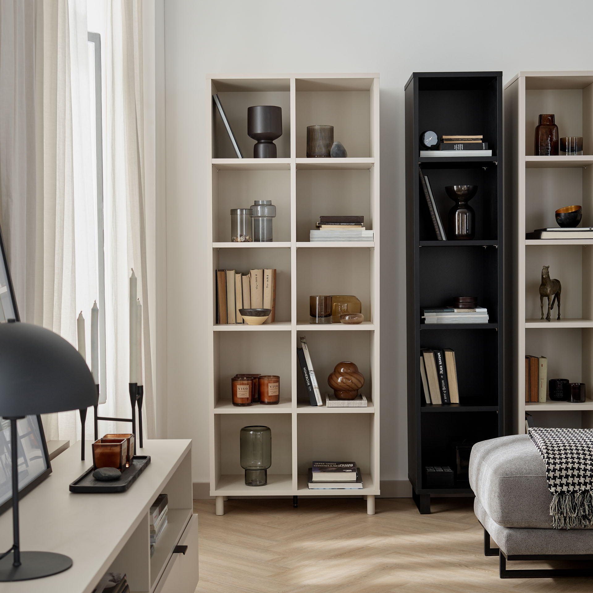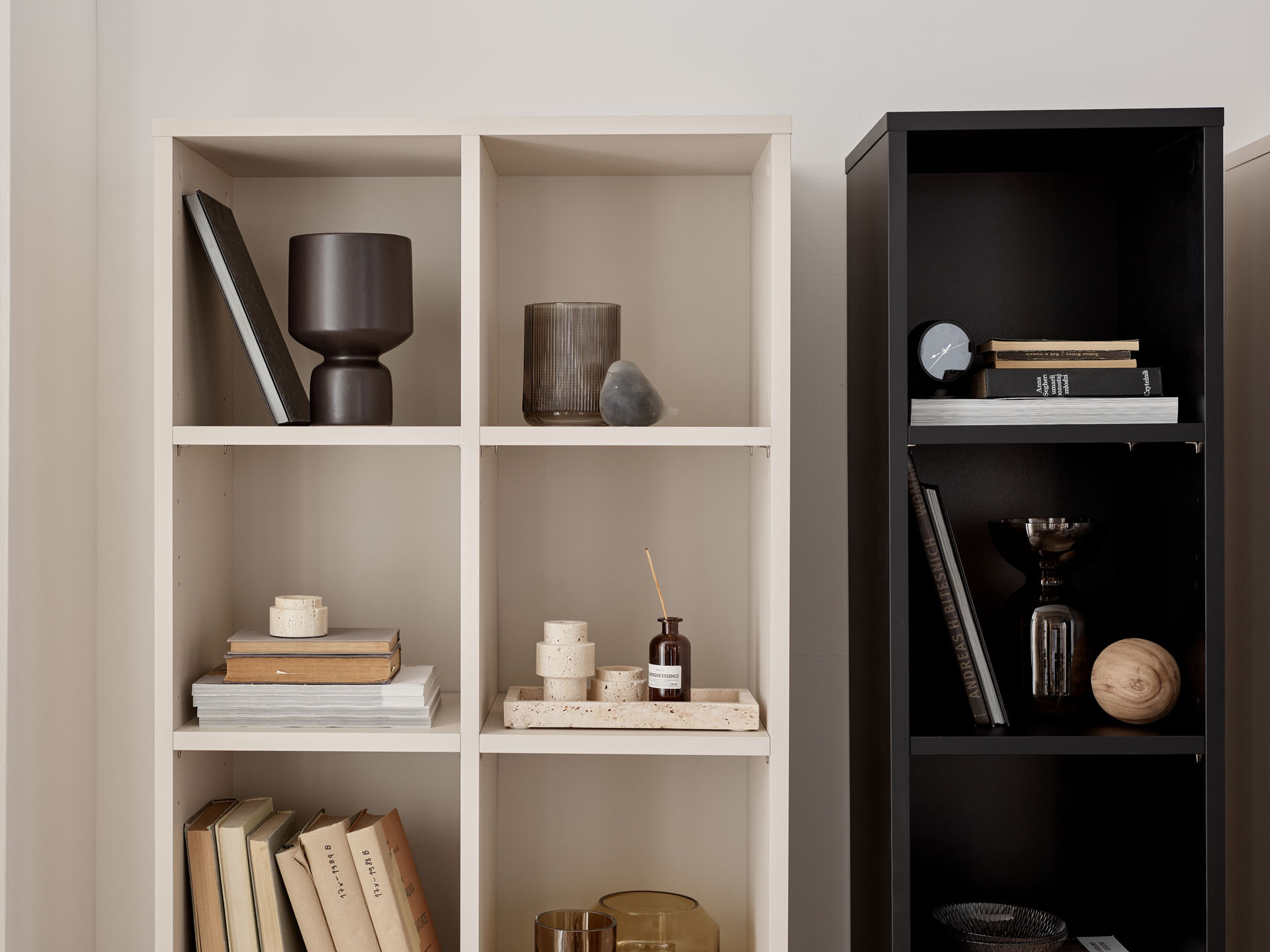 - Podwójny regał możesz zestawić z innymi regałami z kolekcji Simple, uzyskując spójną zabudowę do przechowywania i eksponowania przedmiotów. Dostępny jest wąski (1x5), szeroki (4x5) i niski (3x4) regał, a także zamknięty wariant pojedynczego regału.