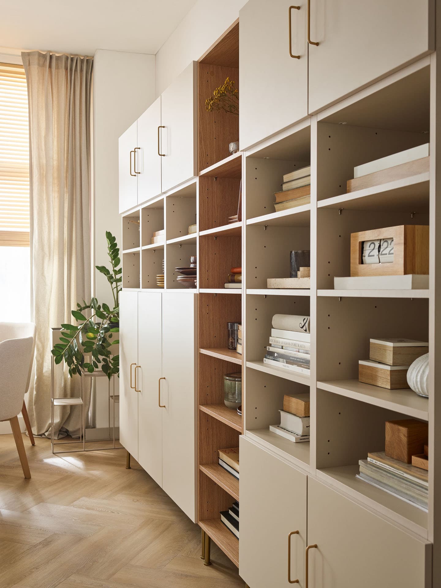 - Potrzebujesz dużo otwartej przestrzeni na książki, a może mnóstwo małych szafek na naczynia, obrusy i zastawę? Dodawaj półki, gdzie tylko zechcesz, dopasowując regał do siebie. Do wyboru masz dwie długości – krótką (42,5 cm) lub długą (88 cm).