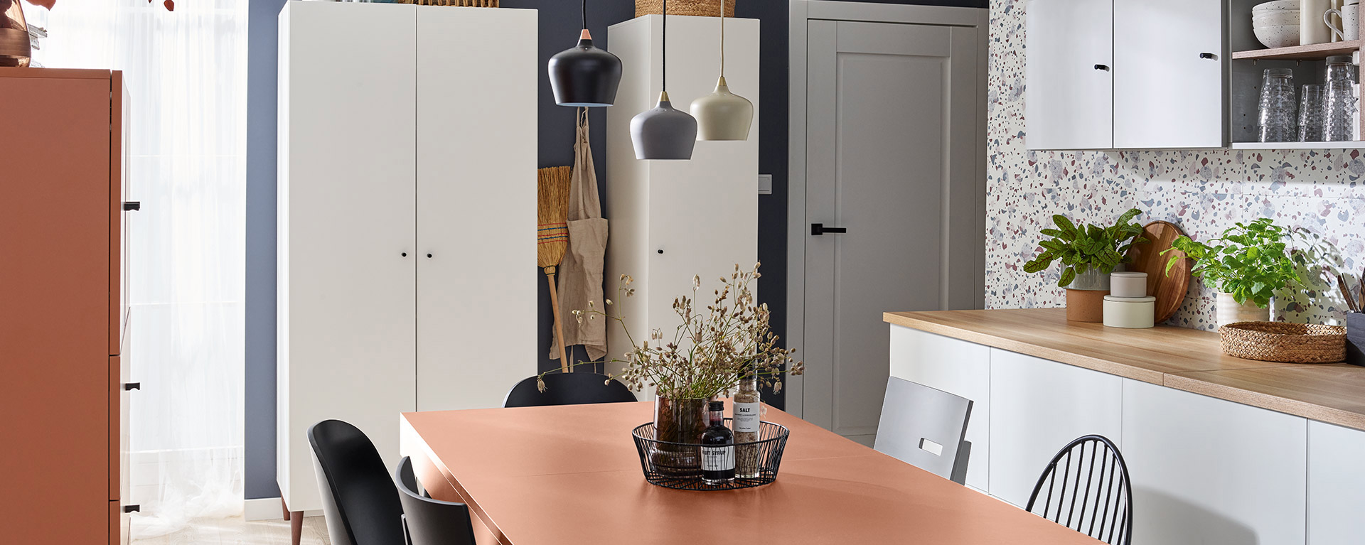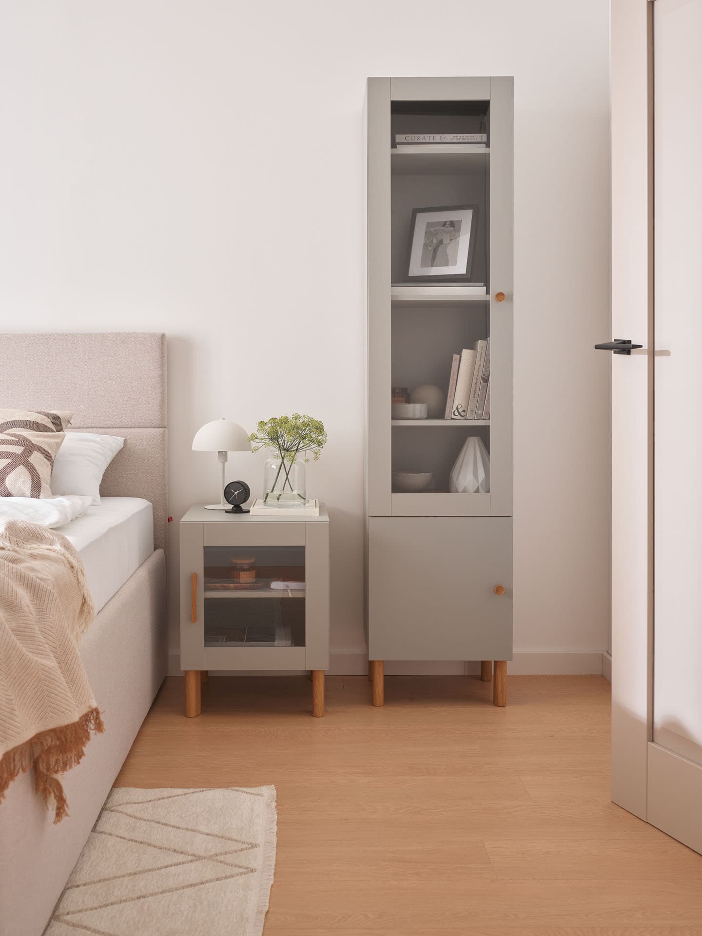 - Dzięki możliwości wstawienia drzwi regał sprawdzi się też w roli szafy. Fronty dostępne są w czterech rozmiarach – wszystkie posiadają system cichego domykania (wyjątkiem jest wybór systemu Push to open, który uniemożliwia zastosowanie cichego domykania).