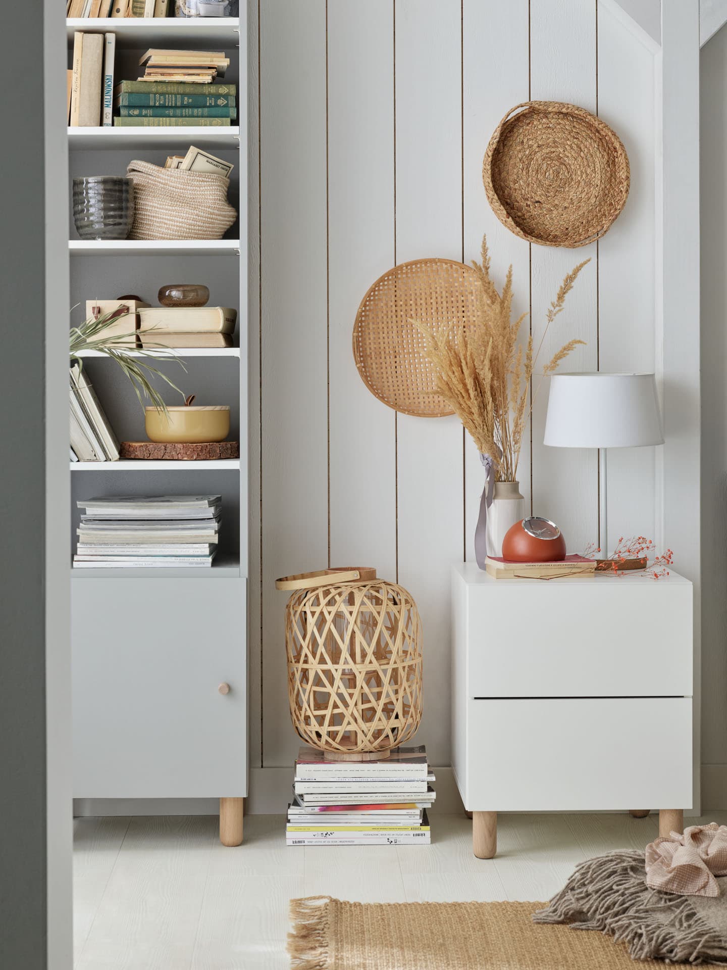 - Pojedynczy regał Creative możesz ustawić na różnych rodzajach nóg i stelaży wykonanych z drewna lub metalu. Dostępne są zarówno wysokie nóżki, które dodają lekkości, jak i niskie ślizgacze, dzięki którym mebel subtelnie unosi się tuż nad podłogą.
