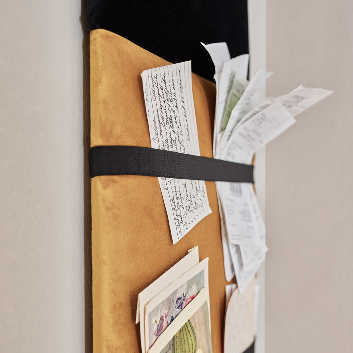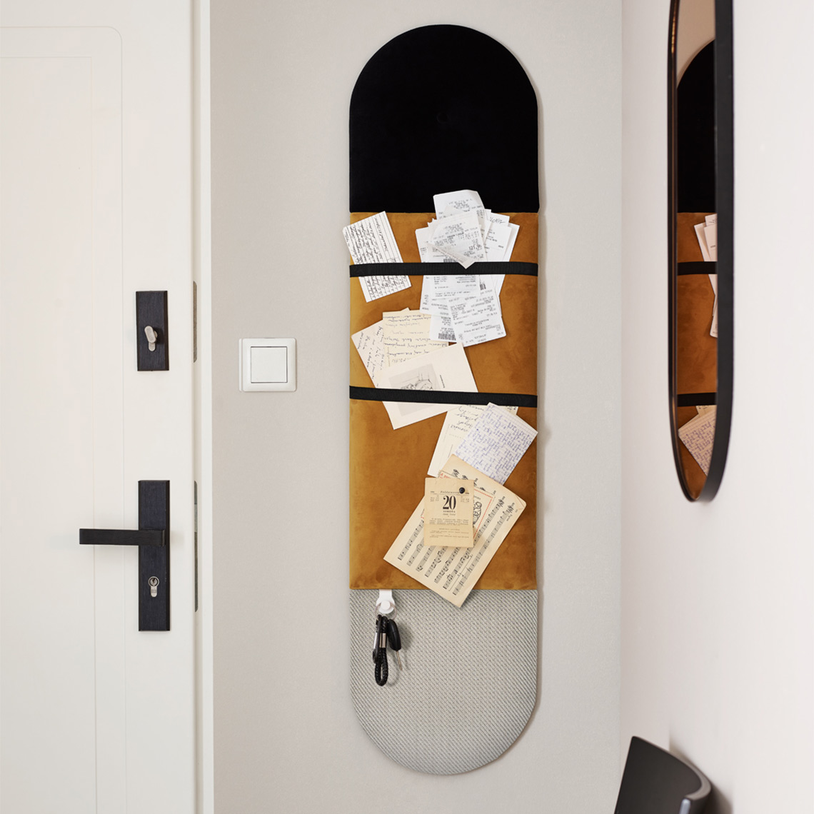 - Podłużny zestaw sprawdzi się jako miękkie oparcie, przyjemne w dotyku wykończenie wnęki lub zabezpieczenie ściany nad biurkiem. Do paneli można dokupić dedykowane gumki i haczyki, które pozwalają na przyczepianie i wieszanie drobiazgów.
