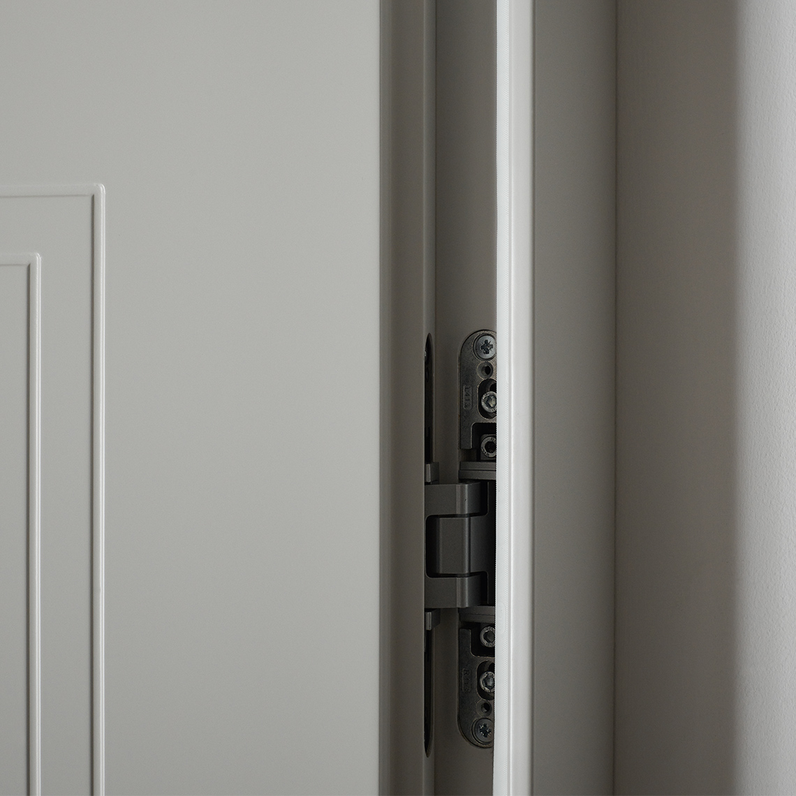 Bezprzylgowa z zawiasami typu DUO nikiel, zamek magnetyczny wpuszczany. W dostępnej za dopłatą kolekcja BLACK: zawiasy DUO w kolorze czarnym, blacha czołowa zamka magnetycznego w kolorze czarnym.