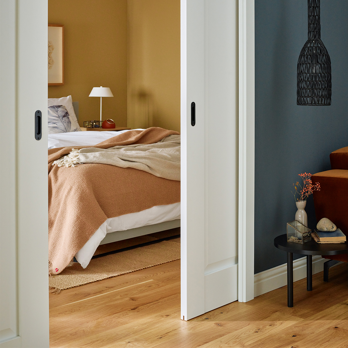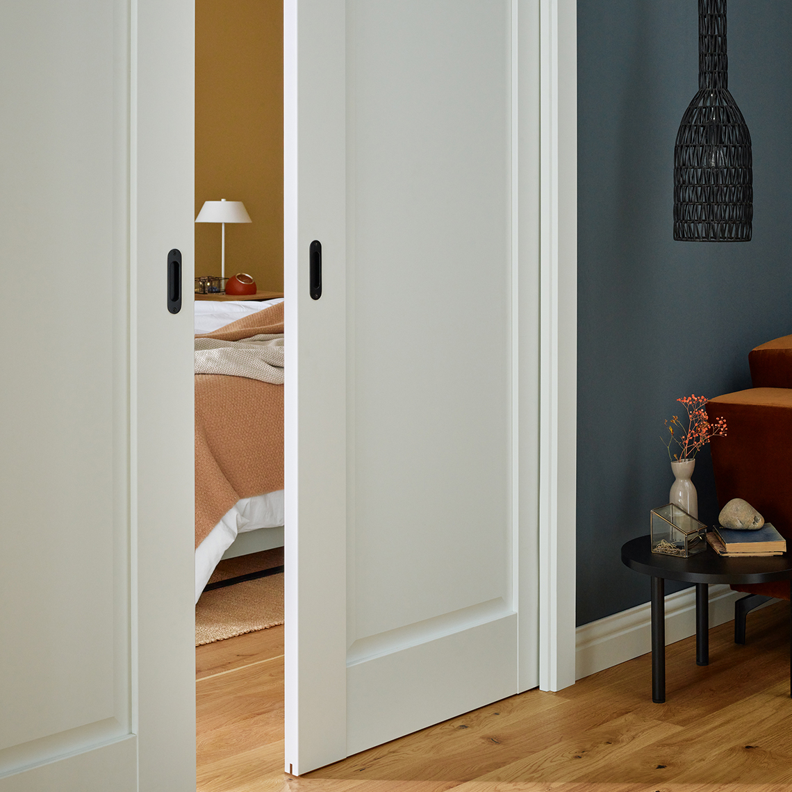 - Drzwi można skonfigurować jako przesuwne ukryte w ścianie - pojedyncze lub podwójne. Produkt podlega indywidualnej wycenie w salonie VOX lub przez kontakt mailowy: sklep@vox.pl. Więcej o systemie przesuwnym Fresto dowiesz się tutaj.