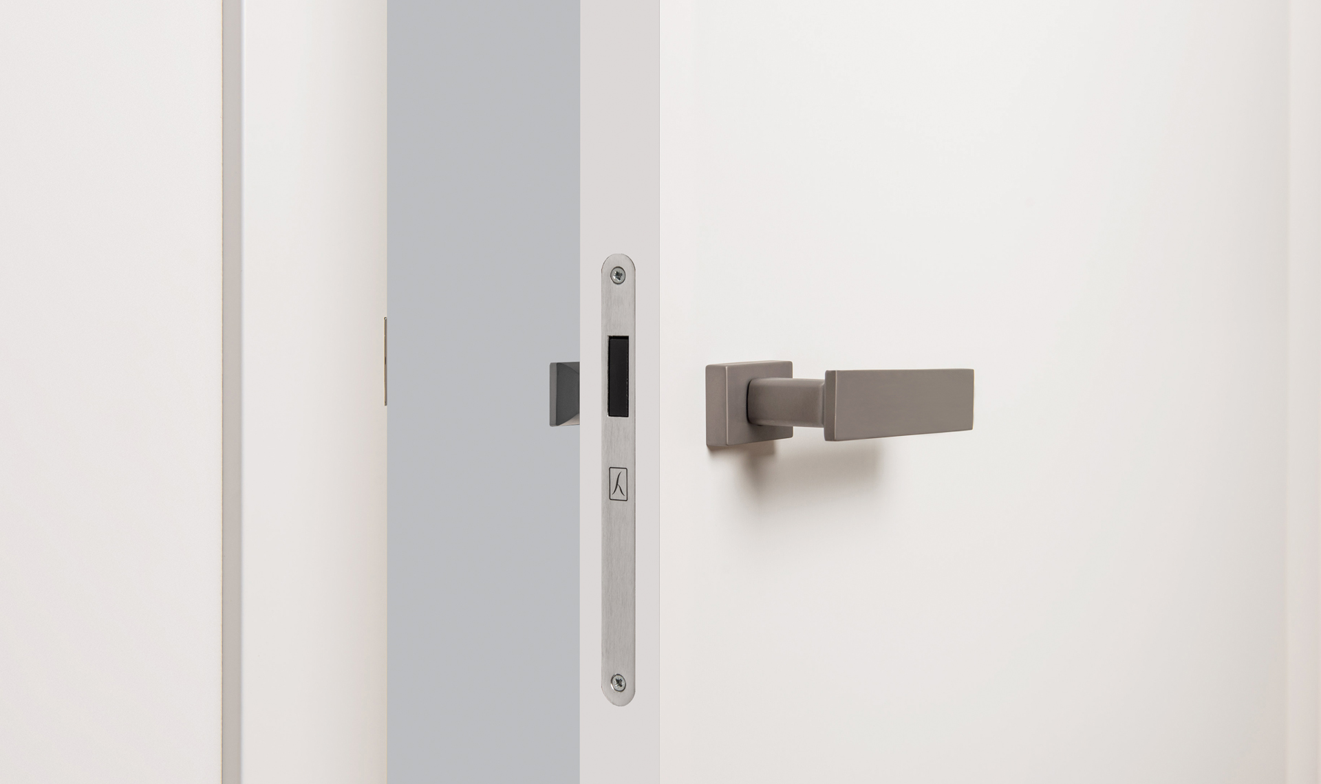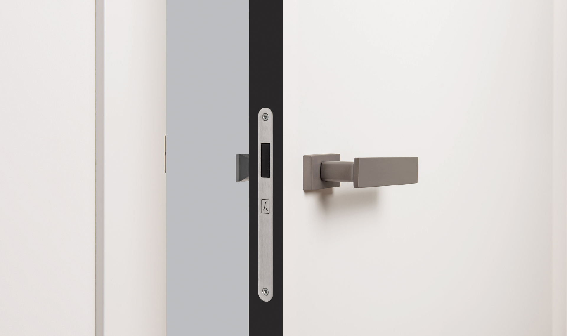 Zamek: magnetyczny na klucz (opcja bezprzylgowa), magnetyczny oszczędnościowy (opcja bezprzylgowa), magnetyczny do WC (opcja bezprzylgowa), magnetyczny na wkładkę (opcja bezprzylgowe)