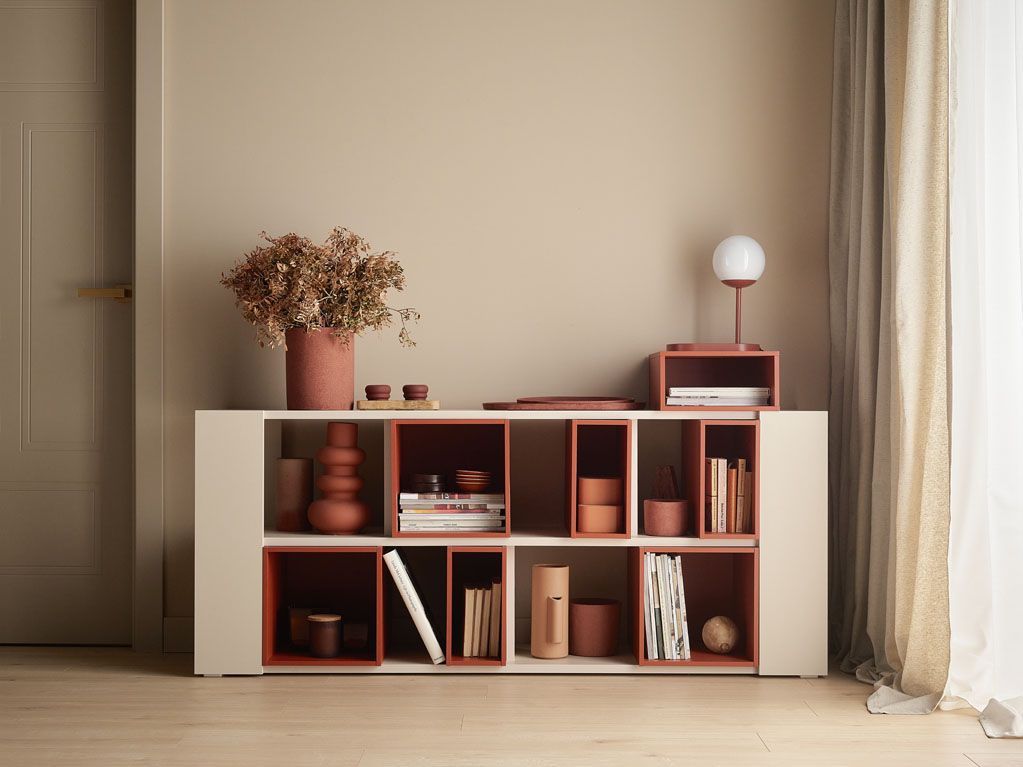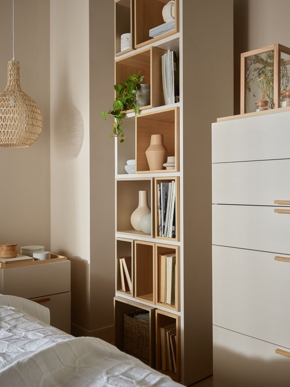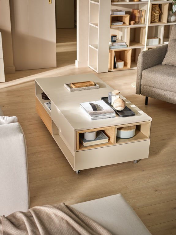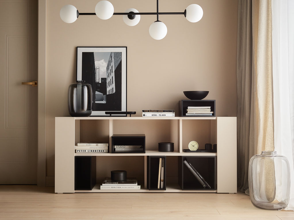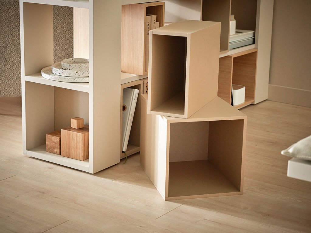 - Skrzynka może uzupełnić różne meble z tej samej serii, takie jak regał, stolik kawowy czy szafka RTV. Dzięki niej można nie tylko spersonalizować ich wygląd, lecz również podzielić strefę przechowywania w taki sposób, by była uporządkowana.