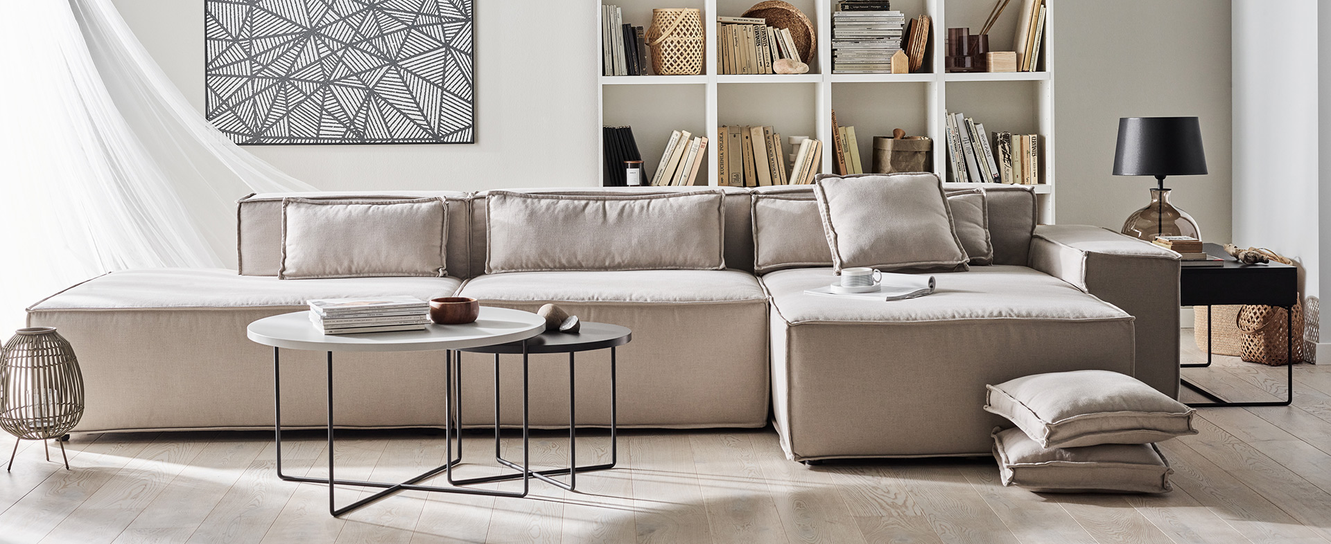 - W skład kolekcji wchodzą: moduł pojedynczy, moduł pojedynczy z boczkiem, sofa 2-osobowa, otomana z boczkiem, moduł narożny, puf - dostępne w wersji standardowe lub ze zdejmowanym pokrowcem.
