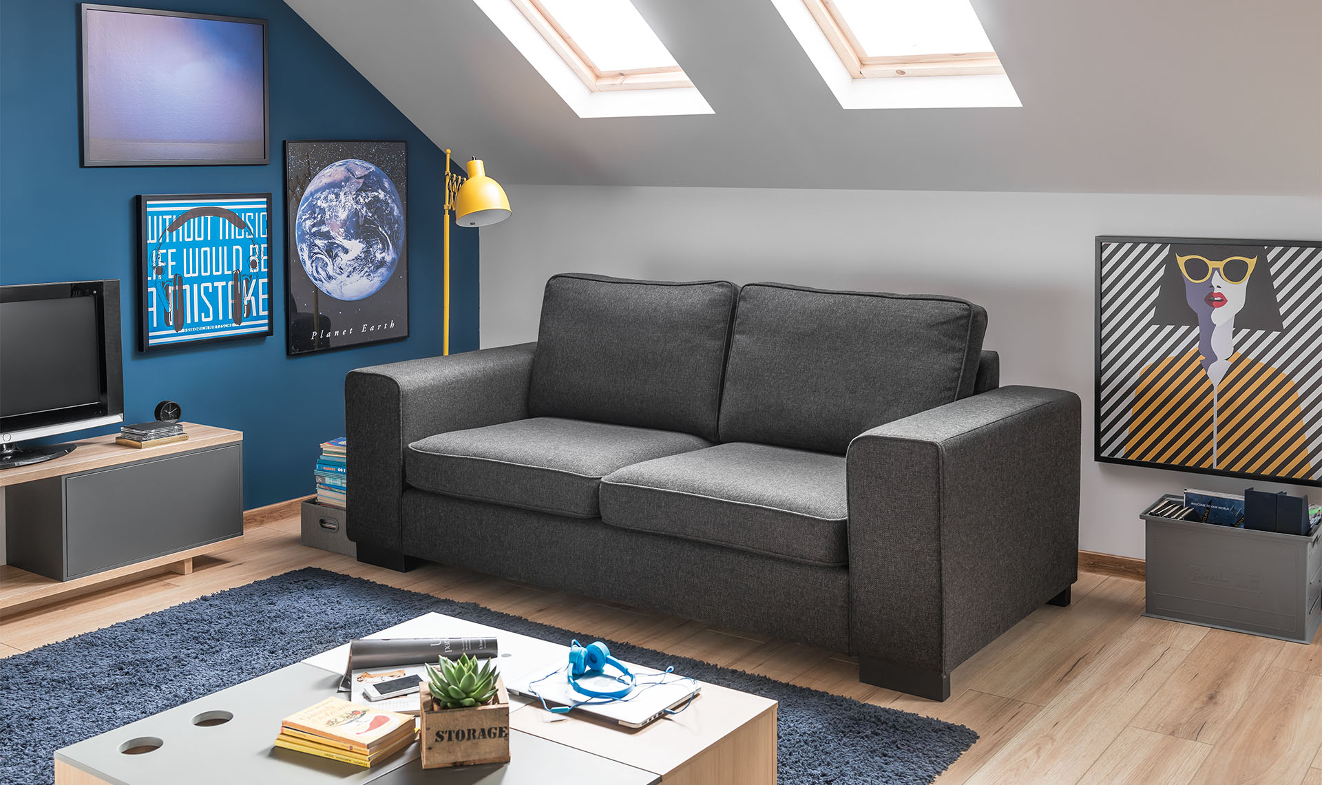 Kolekcja Noel to sposób na ciekawe wnętrze. Dzięki zróżnicowanym modelom mebli: od narożnika, aż po puf, W Twoim wnętrzu znajdzie się miejsce na wszystko, tylko nie na nudę. Klasyczne geometryczne kształty skrywają otulającą miękkość. Dzięki funkcji spania, sofa dwuosobowa może w ciągu dnia służyć do podejmowania gości, a w nocy stanowić dodatkowe miejsce do spania. Tzw. stelaż belgijski - zamontowany w sofie, zalecany jest do spania okazjonalnego. Powierzchnia spania wynosi 184x113cm. Dzięki jednolitej powierzchni materaca nie ma możliwości zapadnięcia się w szczelinę.