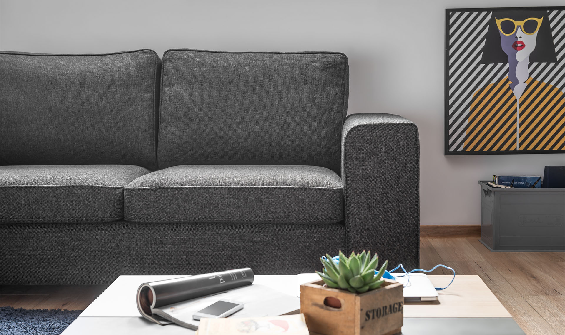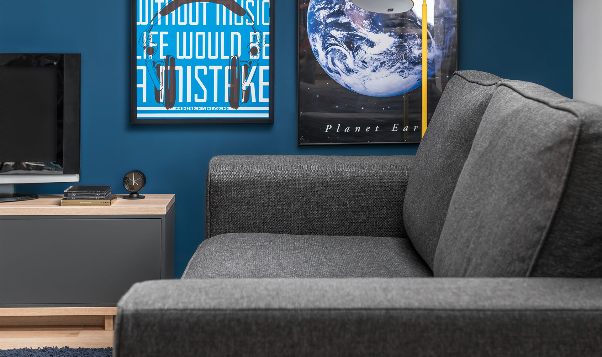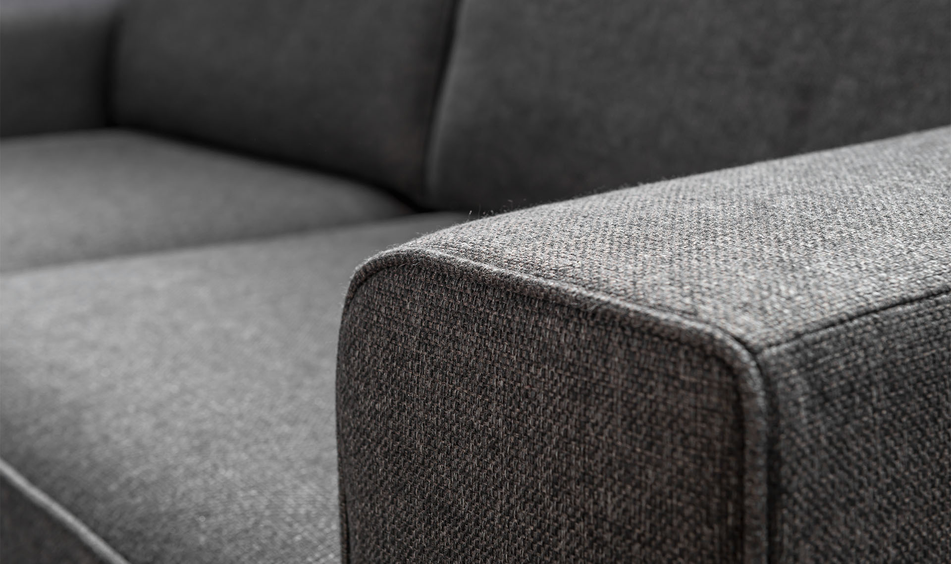 Tapicerowany tył sofy sprawia, że w każdym ustawieniu prezentuje się równie dobrze.