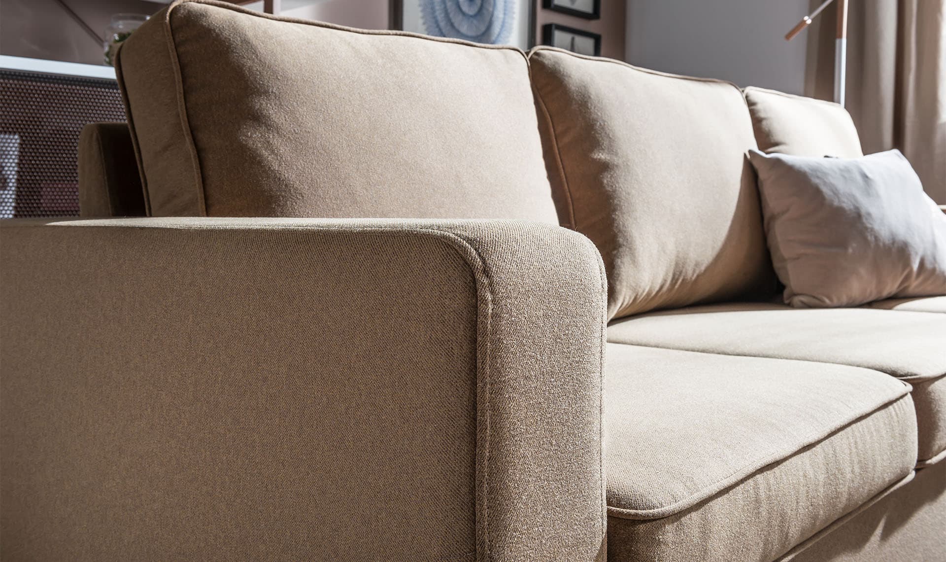 - 3-osobowa sofa Noel sprawdzi się do podejmowania gości – mogą wygodnie usiąść, a także zostać na noc. Komfort relaksu podnoszą spore podłokietniki i miękkie poduszki. Prostą bryłę wyróżniają eleganckie przeszycia brzegów. Tapicerowany tył sofy sprawia, że w każdym ustawieniu prezentuje się równie dobrze.