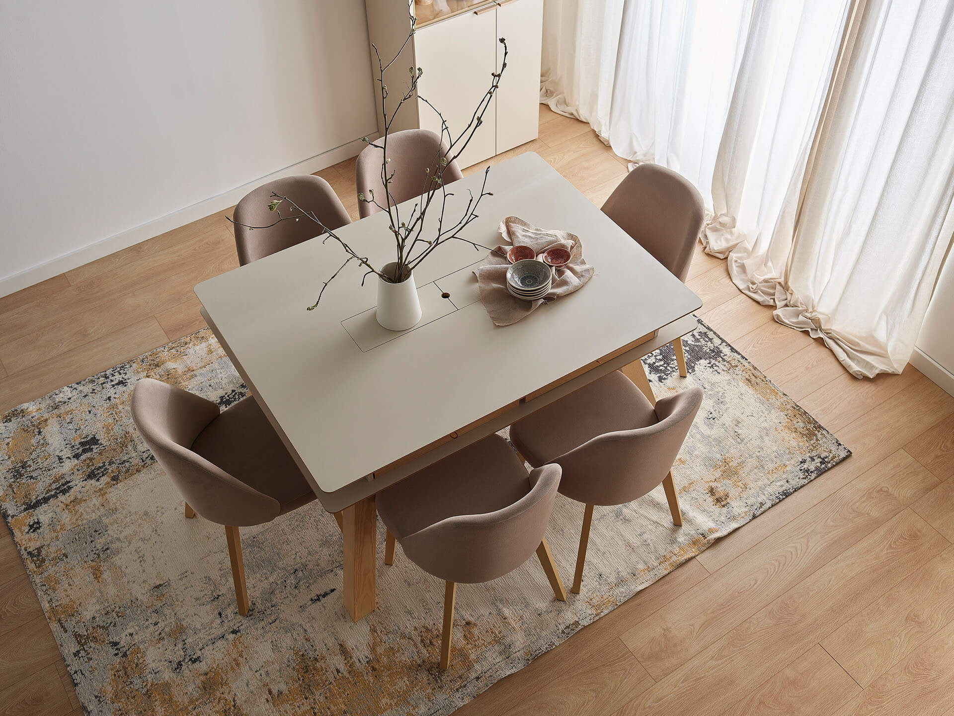 Rozkładany stół z kolekcji 4 You Fresh stanie się gwiazdą każdej kuchni czy jadalni. Dzięki modułowej konstrukcji można go w łatwy sposób dostosować do zmieniających się warunków. W wersji z mniejszym blatem idealnie zmieści się w niewielkiej przestrzeni, zapewniając miejsce do wspólnych posiłków. Podczas kreatywnych wyzwań lub spotkań w większym gronie można go wygodnie powiększyć. Dodatkowe wnęki i szuflady ukryte pod blatem ułatwią organizację przedmiotów.