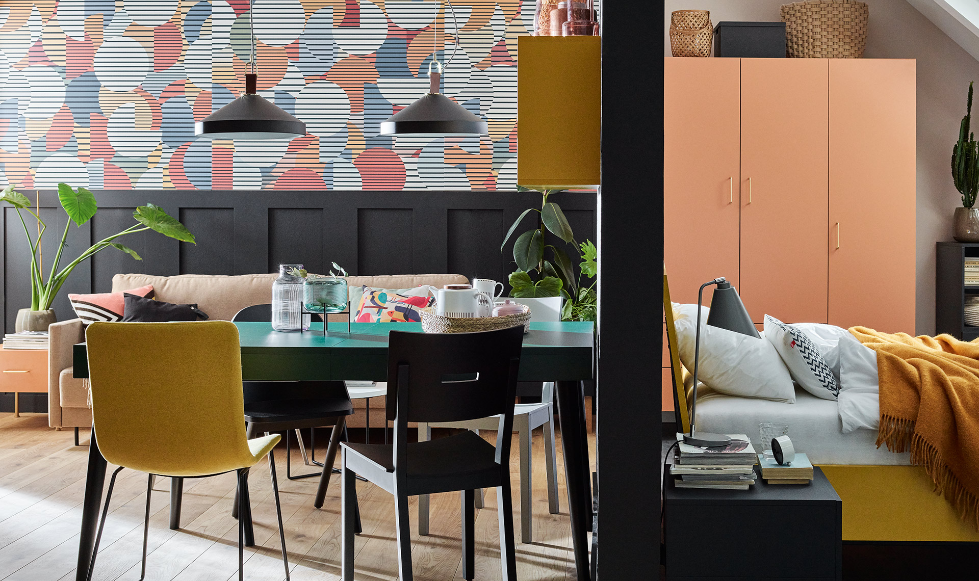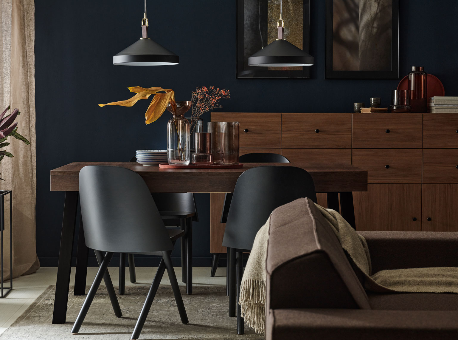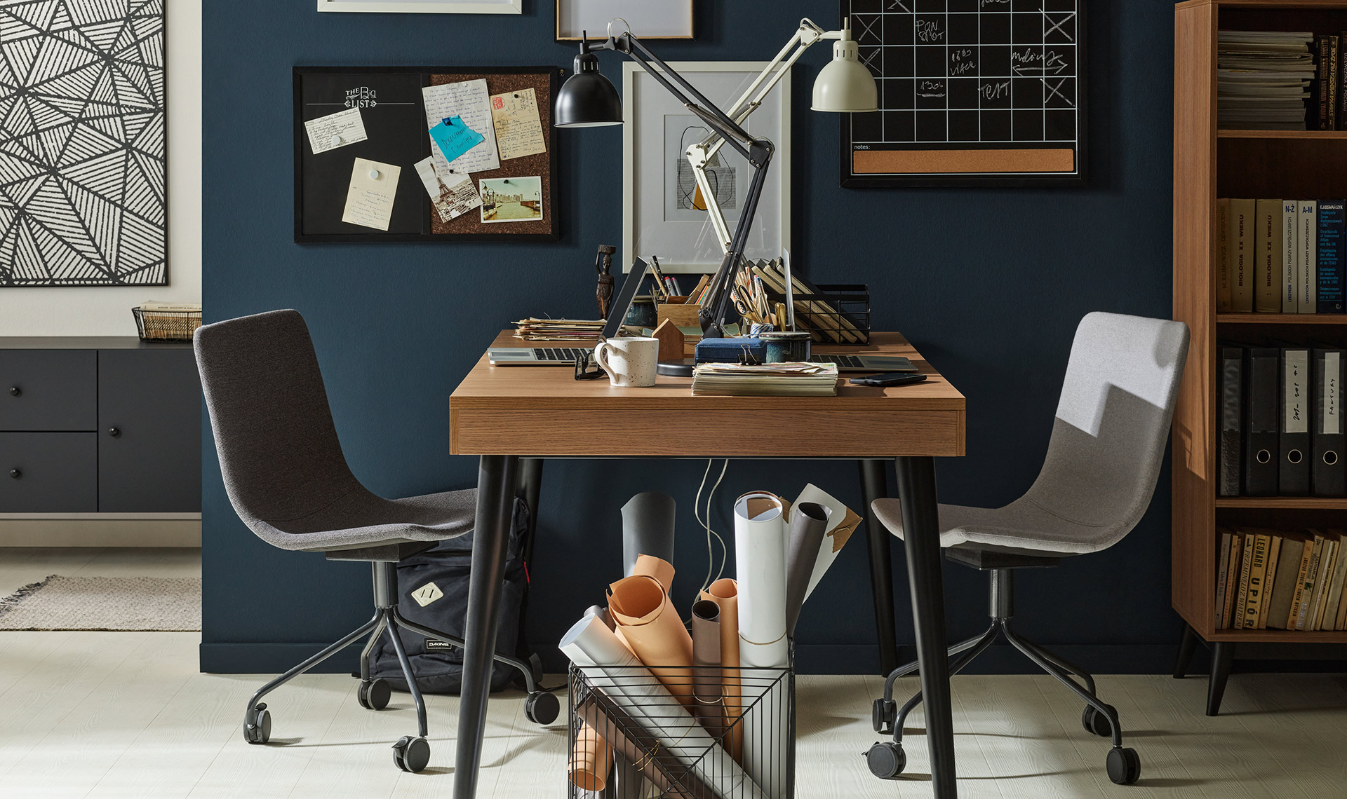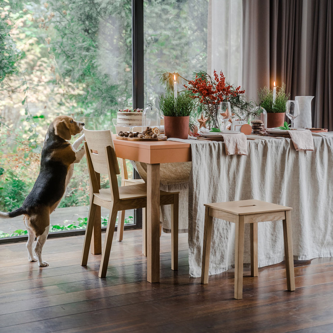 - Skomponuj swój stół od zera lub wybierz jeden z gotowych projektów. Blat o odcieniu brązowego dębu na metalowych płozach, biały stół ze skośnymi nogami lub intensywnie zielony blat ze stożkowatymi nogami – to tylko kilka z możliwych wariantów, które możesz w pełni modyfikować.
