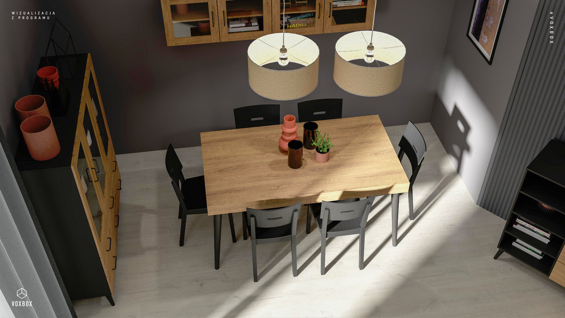 Model zaprezentowany w konfiguratorze nie oddaje w pełni kolorystyki stołu i jego detali – może to zależeć np. od używanego przez Ciebie monitora. By lepiej poznać poszczególne cechy systemu Creative, zobacz zdjęcia lub odwiedź najbliższy salon VOX, w którym czeka na Ciebie biblioteka materiałowa zawierająca kompletne zestawienie barw i materiałów.