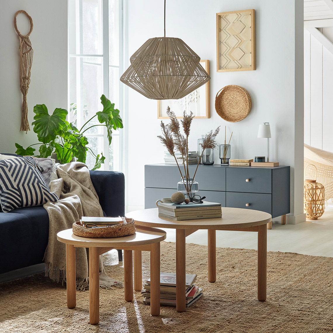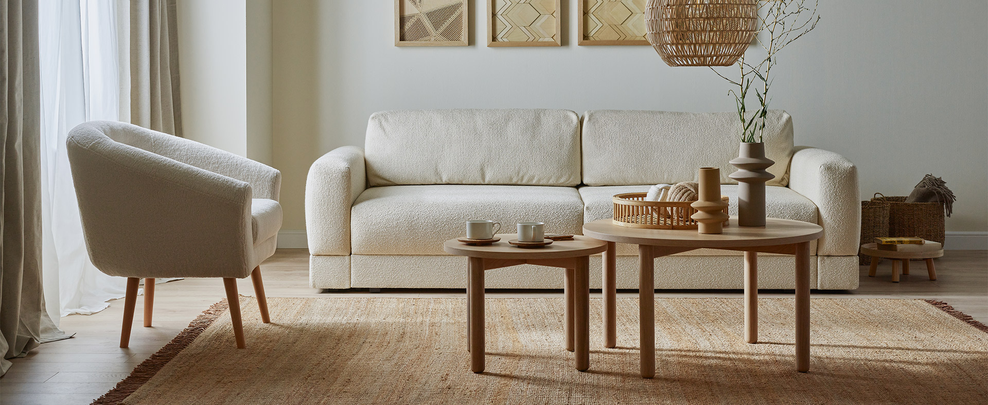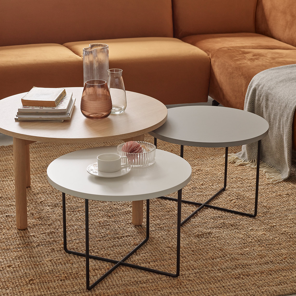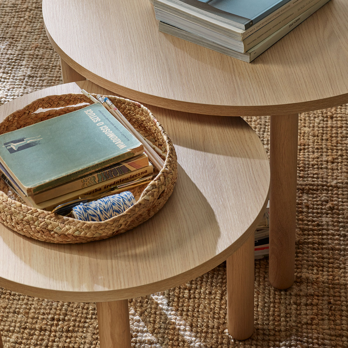 - Stolik kawowy dostępny jest również w większym rozmiarze lub w wersji prostokątnej. Wybierz jeden z nich lub stwórz w salonie aranżację, wykorzystując poszczególne modele.