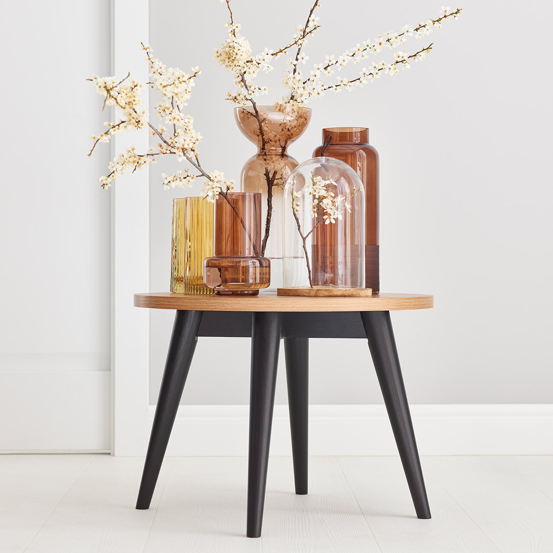 - Stwórz swój nowy stolik zupełnie od zera lub wybierz jedną z trzech gotowych wersji: z ciemnym dębowym blatem i ukośnym stelażem, z blatem i nóżkami w odcieniu miodowego dębu lub z białym blatem i metalową podstawą.