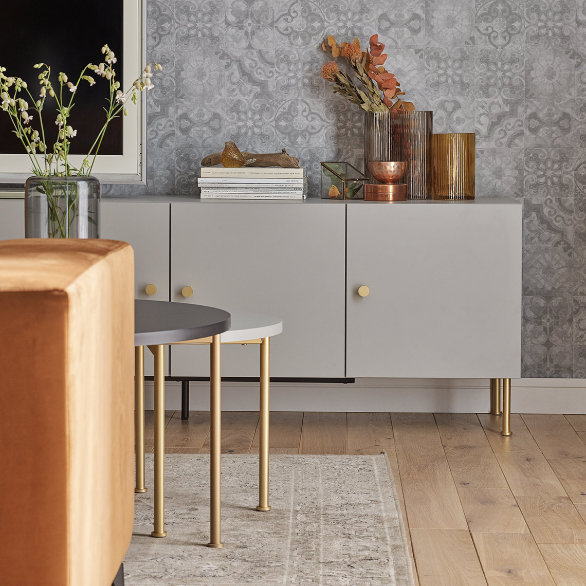 Okrągły, niski stolik kawowy doskonale odnajdzie się zarówno w niewielkich pokojach dziennych, jak i przestronnych salonach. Dzięki sprytnemu systemowi meblowemu Creative łatwo dopasujesz jego wygląd do swoich własnych pomysłów na wnętrze.