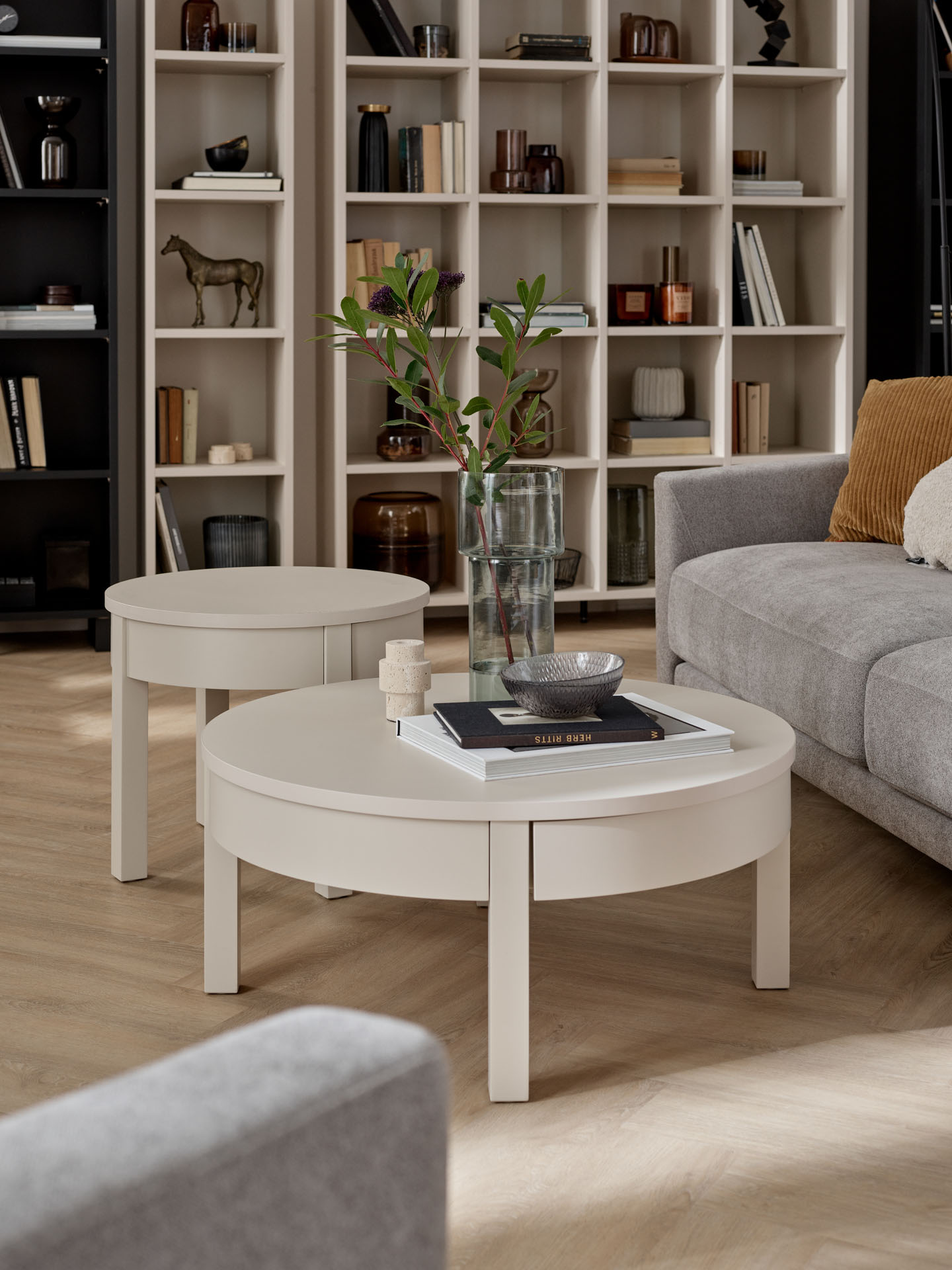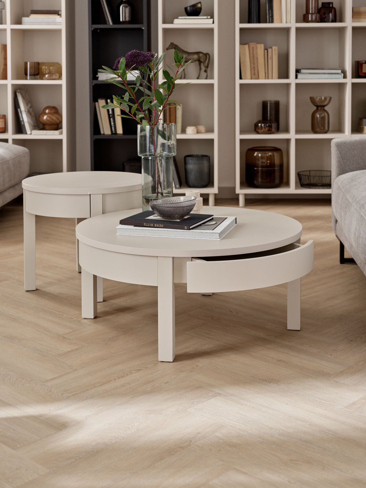 - W ofercie dostępne są także wyższe stoliki Simple o średnicy 54 cm oraz 80 cm. Razem z niższym stolikiem tworzą funkcjonalny zestaw do dużego salonu.