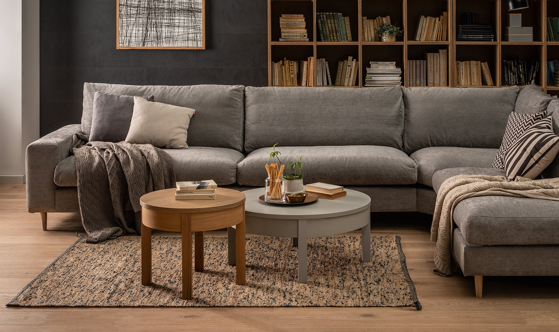- Jeśli potrzebujesz więcej miejsca na przekąski i napoje, możesz wybrać wysoki stolik o średnicy 80 cm z tej samej kolekcji.