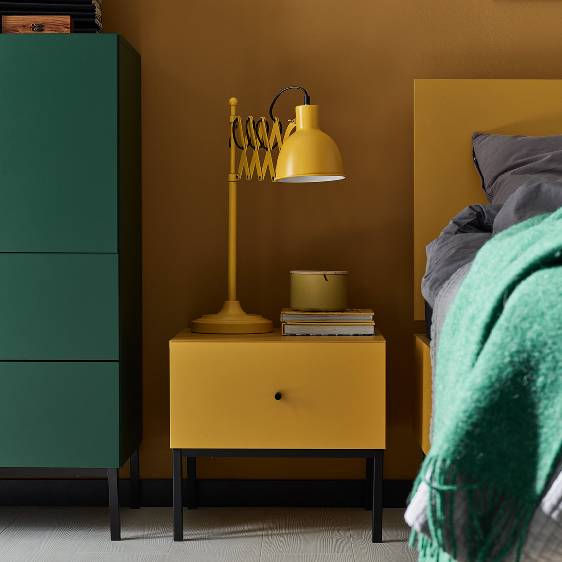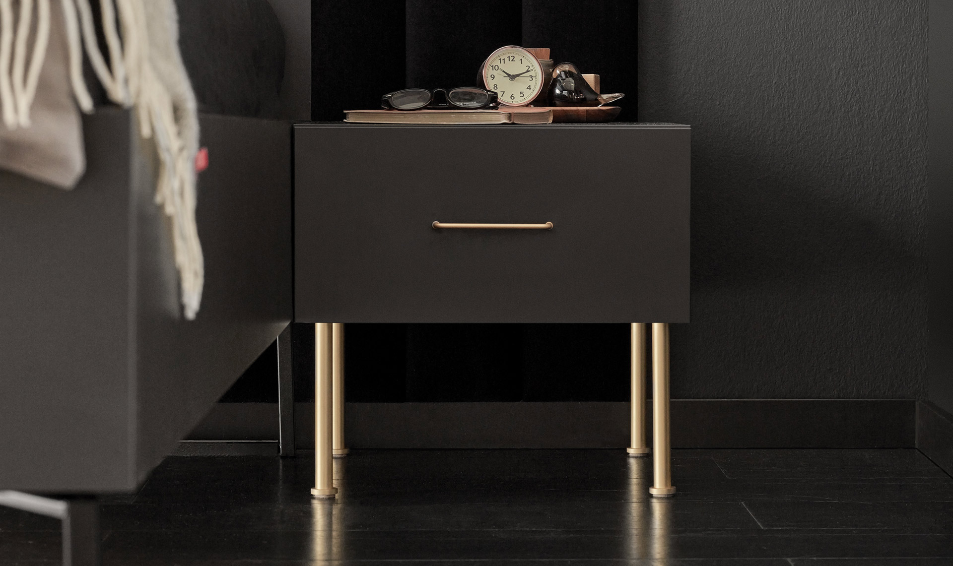 - Dopasuj wykończenie stolika do pozostałych mebli w sypialni, dobierając jeden z 11 kolorów frontu i korpusu.