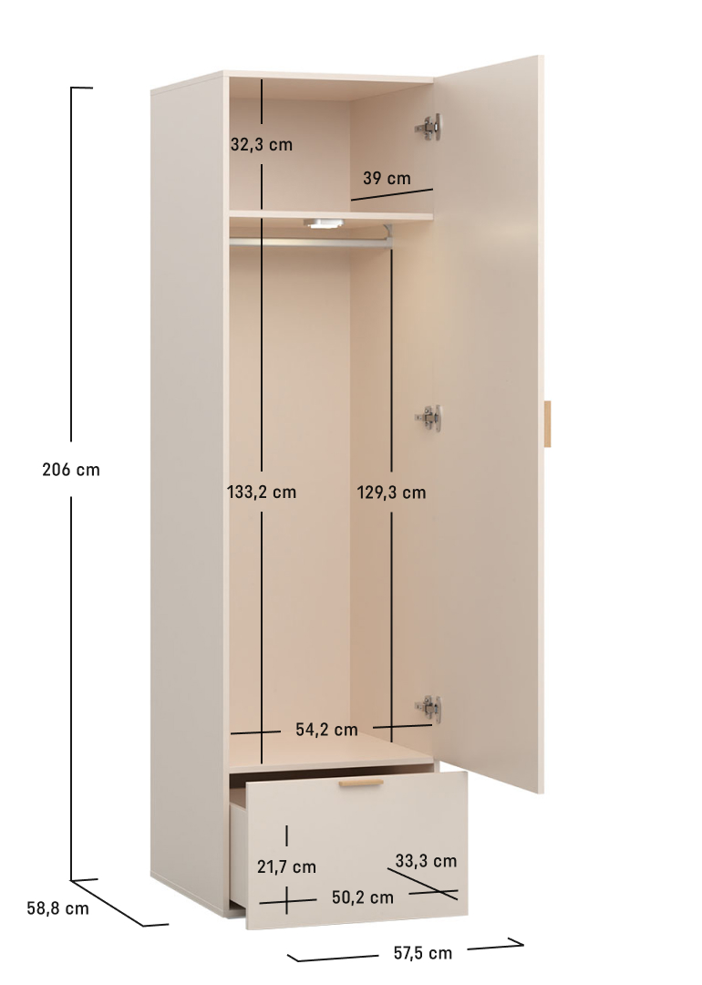 szerokość: 57.5 cmwysokość: 206 cmgłębokość: 56.7 cm
