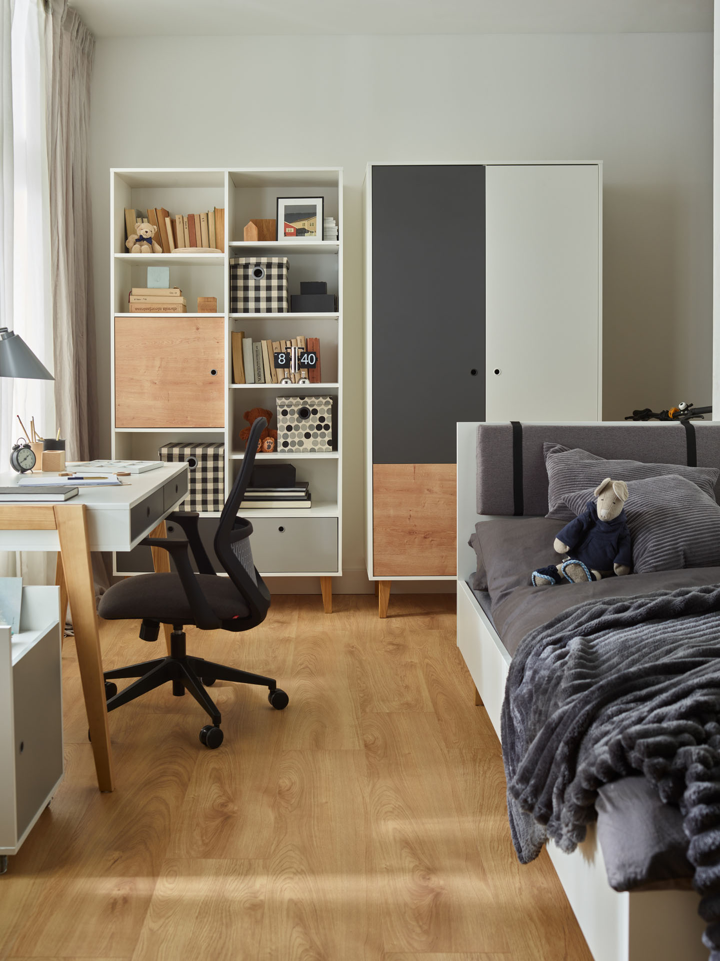 Praktyczna szafa 2-drzwiowa z kolekcji Concept bez trudu pomieści całą garderobę dziecka lub dorosłego, jednocześnie nie zajmując wiele miejsca w pokoju. Funkcjonalne wnętrze mebla ułatwia utrzymanie porządku, pozwalając zorganizować rzeczy wedle własnych potrzeb.