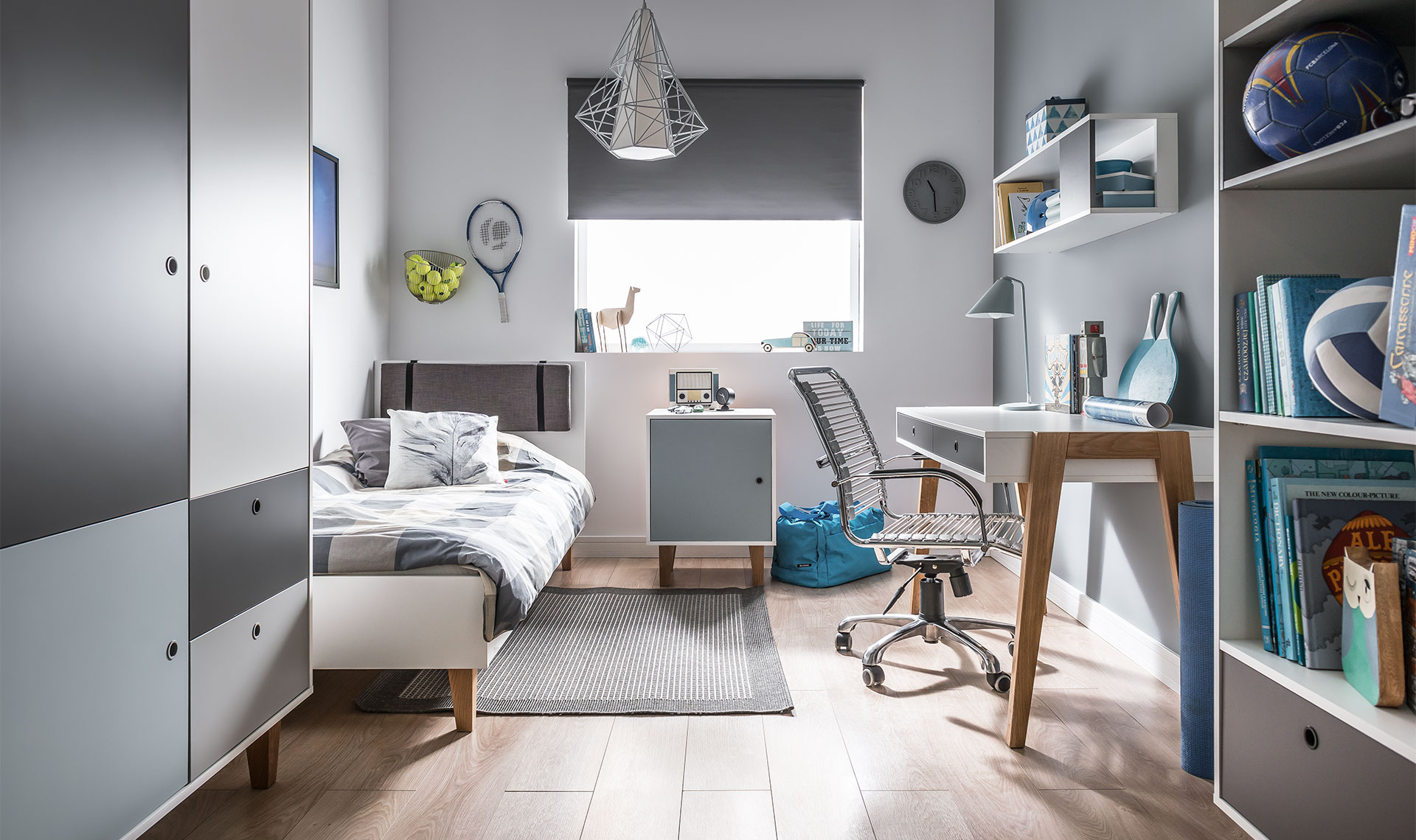 - U dołu szafy znajduje się mała szafka na wszelkie inne potrzebne przedmioty – gry, zabawki czy sportowe akcesoria. O kolorze jej frontu decyduje się na etapie zakupu – do wyboru jest aż 6 różnych wariantów. Dzięki temu mebel idealnie wpasuje się w gust oraz wystrój pokoju. Taki front można później dokupić pojedynczo i wymienić, gdy poprzedni się znudzi.