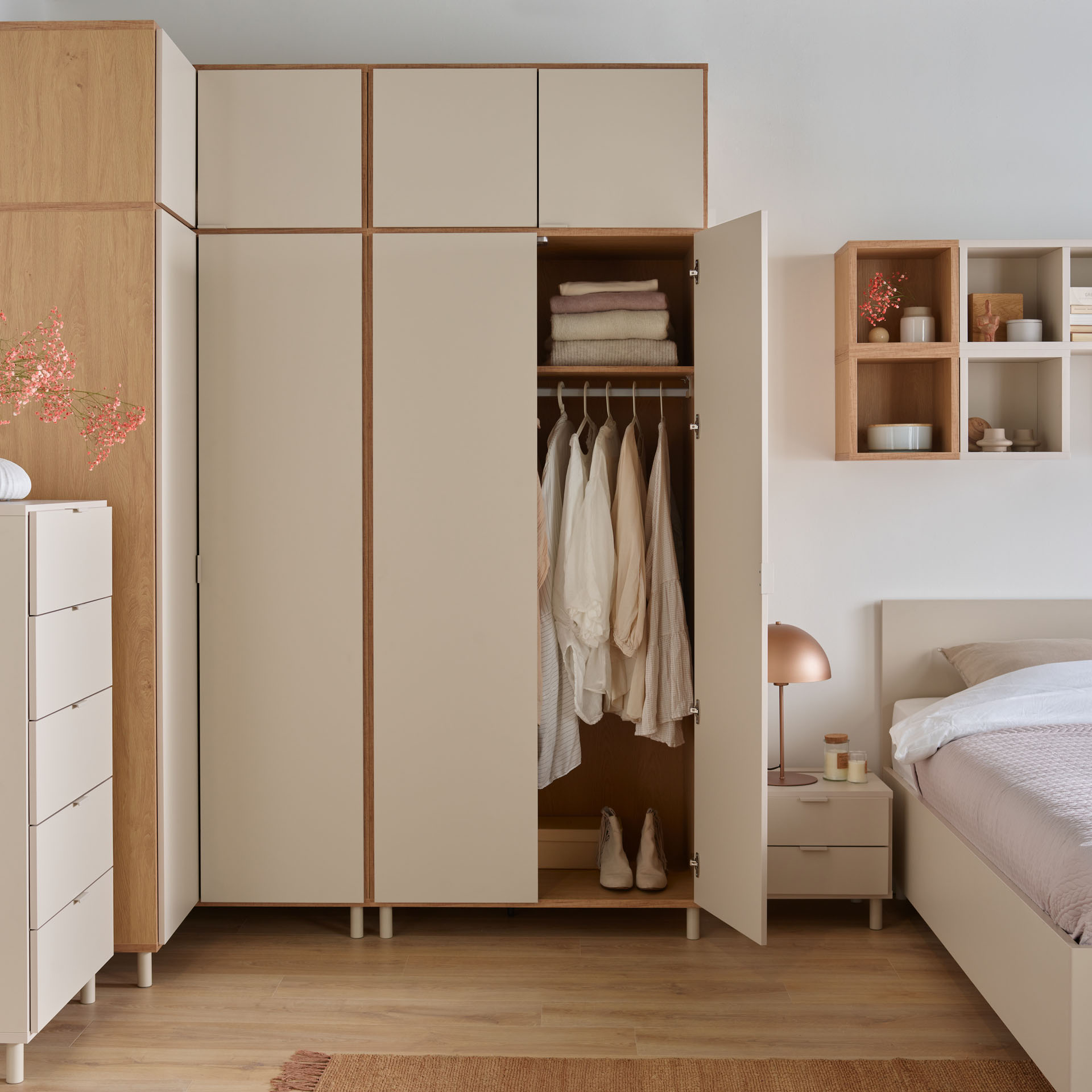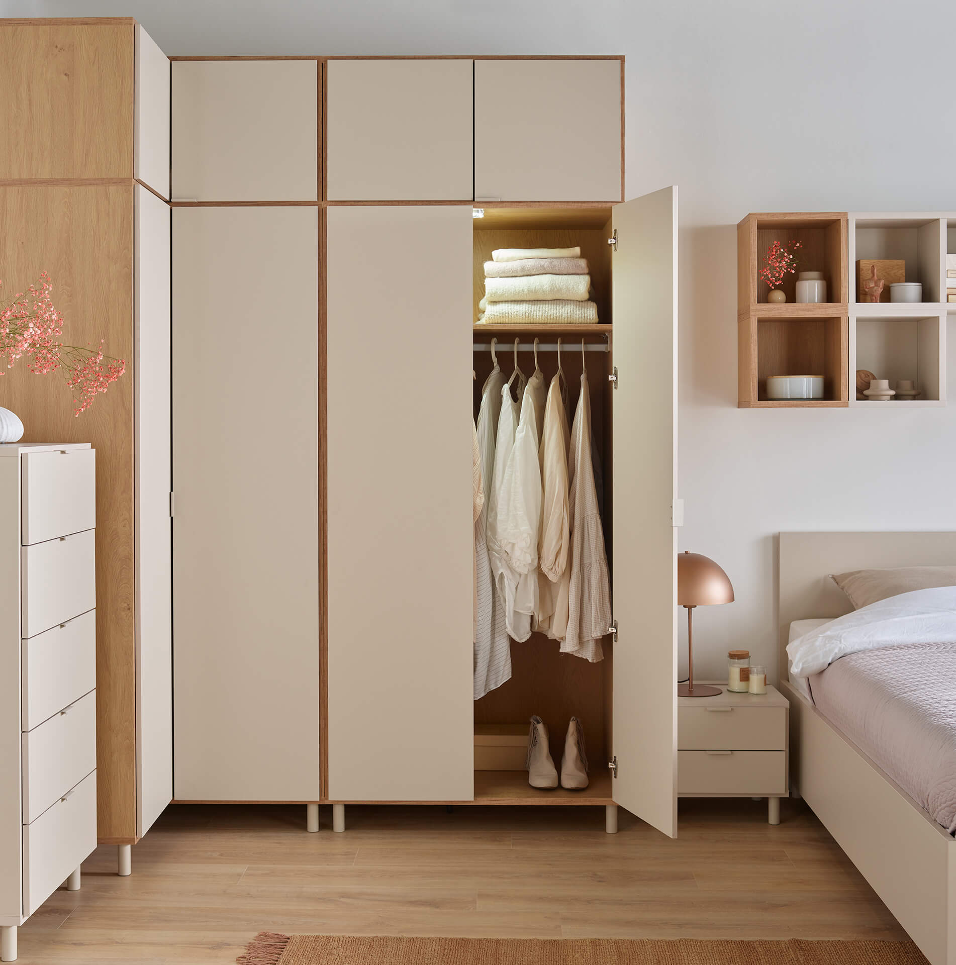 - Przestrzeń do przechowywania w szafie 2-drzwiowej została zaprojektowana w oparciu o badania dotyczące sposobu przechowywania ubrań.