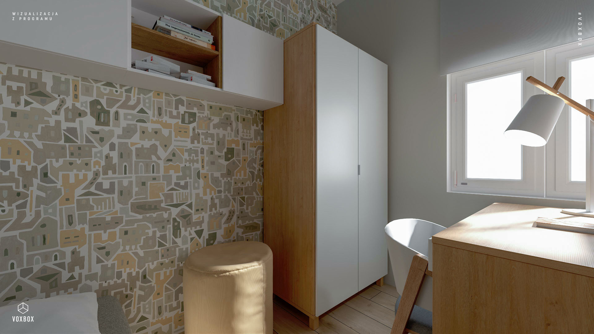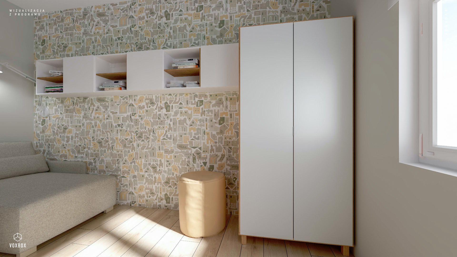- Pionowa przegroda - pomiędzy częścią na ubrania wiszące a leżące - celowo nie została umieszczona centralnie. Projektantka sprawdziła, że złożony stos ubrań potrzebuje maksymalnie 35cm szerokości - tak by ubrania swobodnie leżały i można je było łatwo wyjmować. Dzięki tak dokładnej analizie udało się uzyskać dodatkowe miejsce na ubrania wiszące.