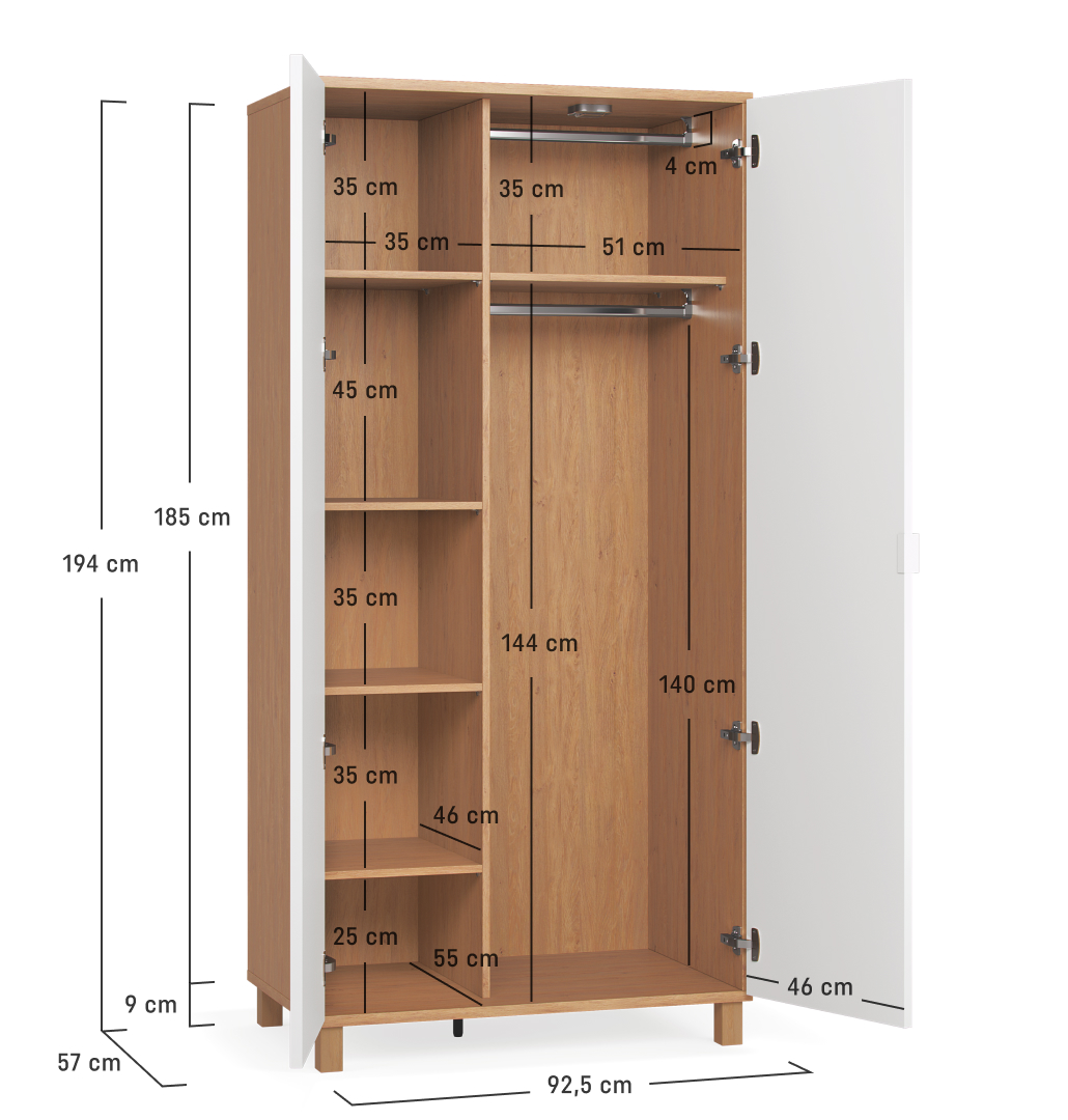 szerokość: 92.5 cmwysokość: 185 cmgłębokość: 57 cm